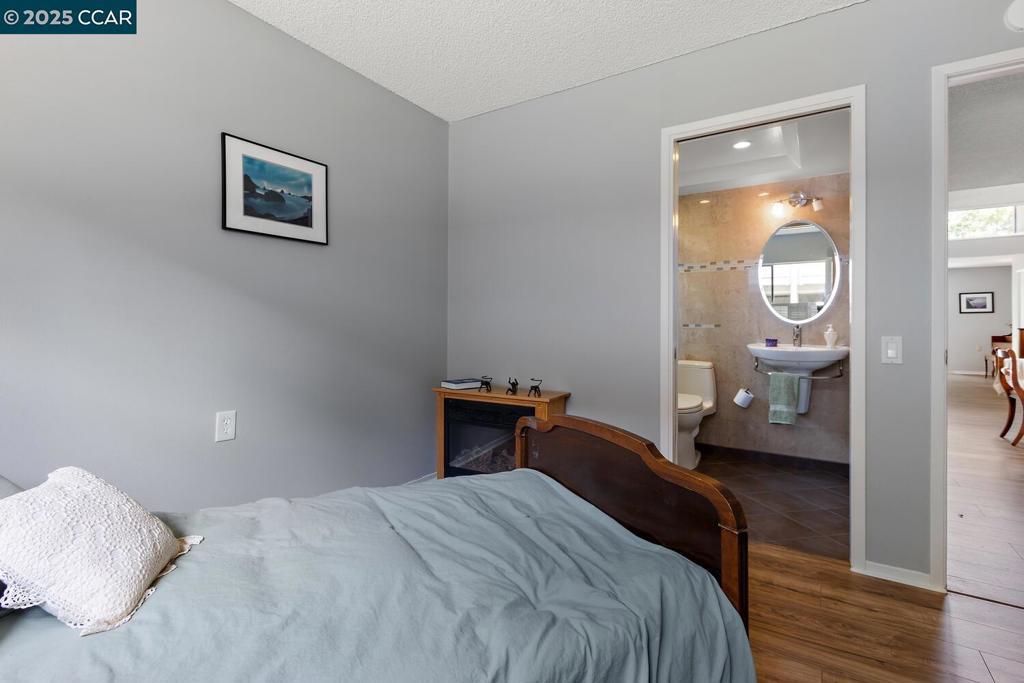 Level-in access with no upstairs neighbors enhances privacy and convenience. This elegantly expanded "Tamalpais" townhome, end unit, offers a bright open concept layout, with an enclosed patio creating an inviting living space featuring a cozy gas fireplace. Dramatic two-story windows bring in abundant natural light and showcase tranquil greenbelt views. Enjoy the spacious grassy area out back, which is perfect for relaxing or hosting a BBQ. Inside, you'll find luxury plank flooring throughout, along with a beautifully updated kitchen and two bathrooms, as well as inside laundry. The large upstairs primary suite overlooks the scenic view, providing a peaceful and private retreat. Central heat and air ensure year-round comfort.