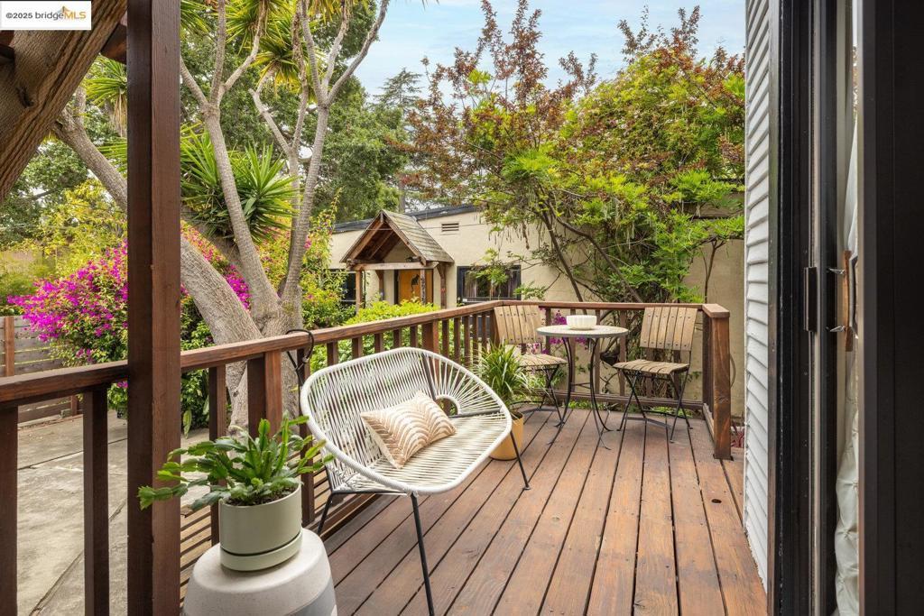 Nestled on a cozy treelined street in the historic Elmwood district, 2910 Hillegass Avenue offers comfort, charm, and convenience. A professionally landscaped garden and sprawling front porch welcome you to this classic brown shingle home – a hallmark of Berkeley’s rich architectural history. The building comprises 4 separate units, each with their own private deck and storage area. Inside, you’ll be charmed by high ceilings, original hardwood floors, and a row of bay windows providing ample natural light. The entire unit has been tastefully updated with modern comforts, including central air conditioning, upgraded furnace, new water heater (2023), and thoughtful soundproofing. The meticulously renovated kitchen includes custom soft-close cabinetry, painted ceramic tiles, and stone countertops. Saltillo floor tile provides warmth and character. The bathroom features Porcelanosa tiles, a concrete-topped custom vanity, and an extra-quiet exhaust fan. Sliding glass doors lead out to the sunny rear deck. Located in Berkeley’s sought after Elmwood district just minutes to College Avenue, UC campus, and Rockridge BART. With a neighborhood WalkScore® of 96, Elmwood provides easy access to an array of amenities. It is also conveniently situated near several beautiful nature spaces.