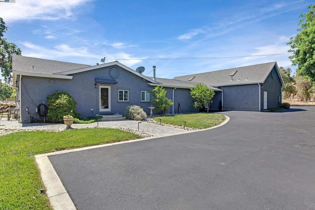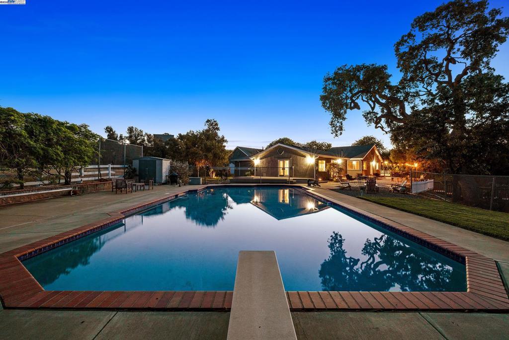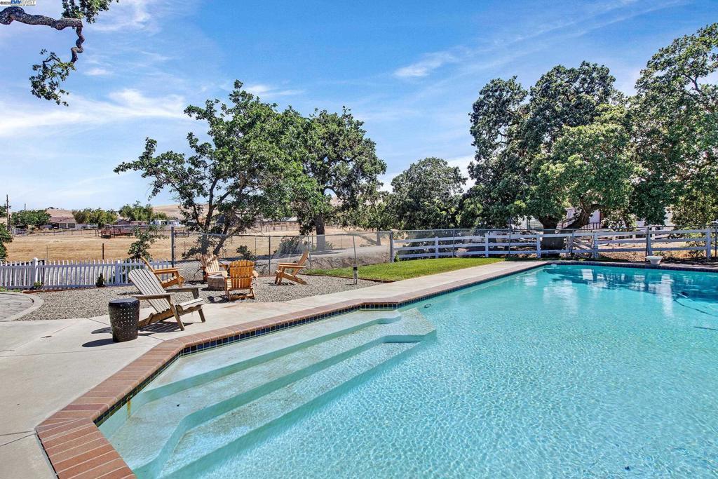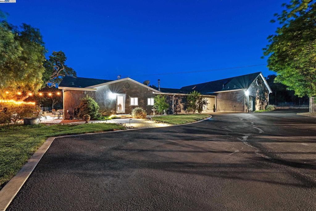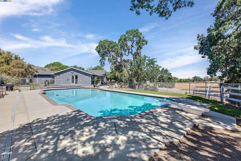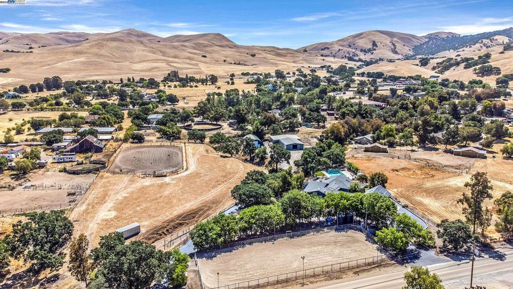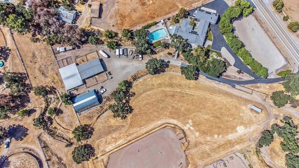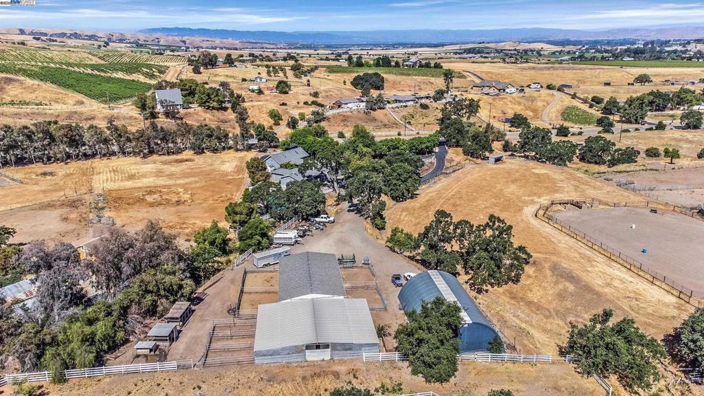 OPEN HOUSE SATURDAY 10/18/25 3:00-5PM **Welcome to the Majestic Big Horn Ranch! This flat 5 acre ranch boasts a 3,400 sqft luxury home with a grand pool, sweeping patios, heritage oak trees, and a seasonal creek. The ranch also enjoys a 10-stall barn, lit riding arena, 40 x 60 shop, and a 2 acre pasture for grazing, roping, farming, ADU, or whatever you can imagine using a flat 2 acres for. At the heart of the home is a masterly designed granite and stainless steel kitchen with large center island and adjacent family room and dining room. No doubt the coveted gathering place for friends and family. Retiring to the primary suite is like escaping to your own private day spa retreat; large bedroom with fireplace, sitting area and views of the pasture, oaks and pool. The marble bathroom is host to a steam shower, large soaking tub, sitting area, wardrobe room and light streaming windows and skylights filling the room with the splendor of the outdoors. With four secondary bedrooms, four full bathrooms, office, four-car garage, 10,000 gal water storage, 30 gal-per minute well production, PV solar and a John Deere backup generator, all situated only 13 minutes from the flag pole in the center of town, the Big Horn Ranch is the quintessential Livermore Valley family compound.