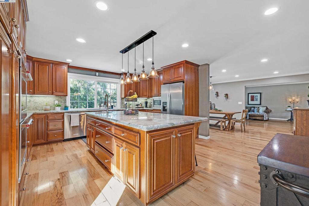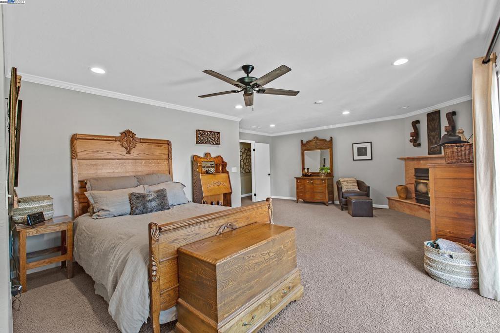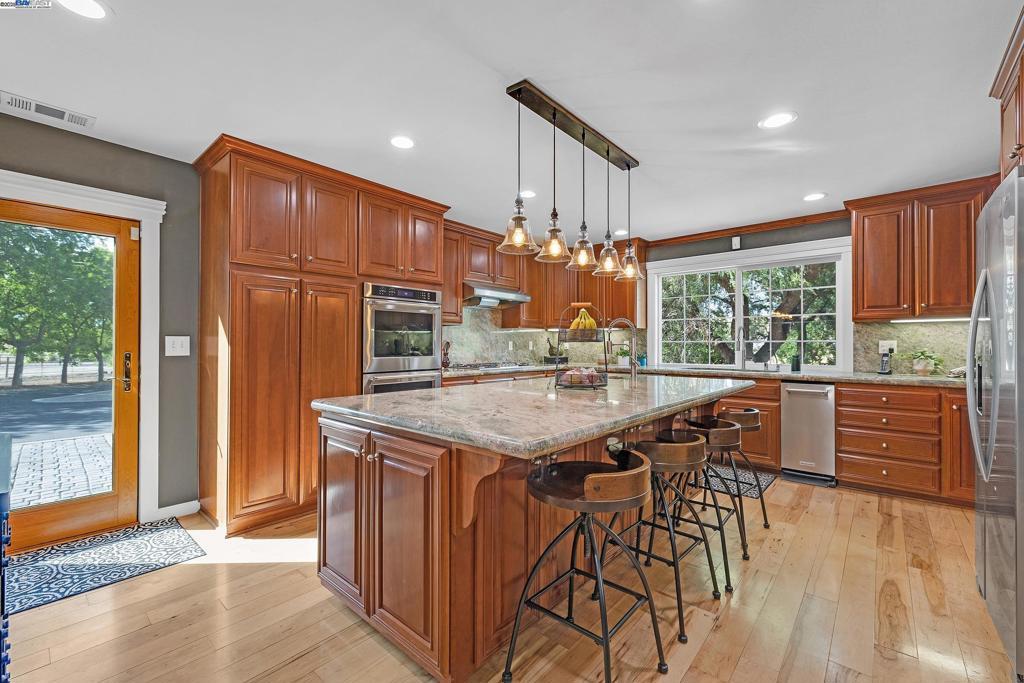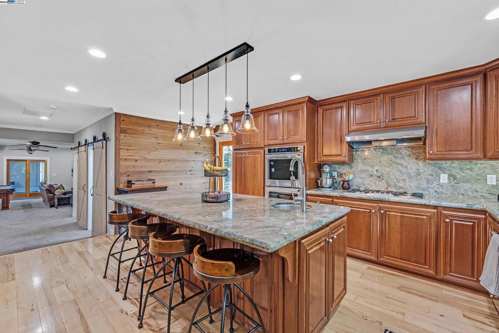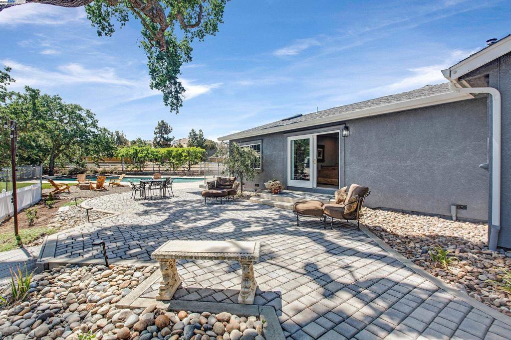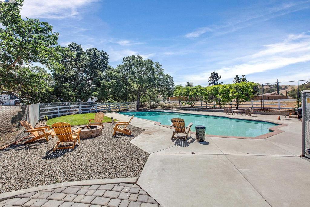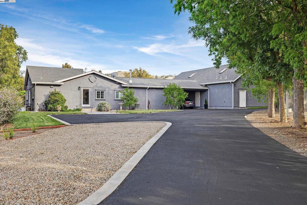 OPEN HOUSE SATURDAY 10/18/25 3:00-5PM **Welcome to the Majestic Big Horn Ranch! This flat 5 acre ranch boasts a 3,400 sqft luxury home with a grand pool, sweeping patios, heritage oak trees, and a seasonal creek. The ranch also enjoys a 10-stall barn, lit riding arena, 40 x 60 shop, and a 2 acre pasture for grazing, roping, farming, ADU, or whatever you can imagine using a flat 2 acres for. At the heart of the home is a masterly designed granite and stainless steel kitchen with large center island and adjacent family room and dining room. No doubt the coveted gathering place for friends and family. Retiring to the primary suite is like escaping to your own private day spa retreat; large bedroom with fireplace, sitting area and views of the pasture, oaks and pool. The marble bathroom is host to a steam shower, large soaking tub, sitting area, wardrobe room and light streaming windows and skylights filling the room with the splendor of the outdoors. With four secondary bedrooms, four full bathrooms, office, four-car garage, 10,000 gal water storage, 30 gal-per minute well production, PV solar and a John Deere backup generator, all situated only 13 minutes from the flag pole in the center of town, the Big Horn Ranch is the quintessential Livermore Valley family compound.