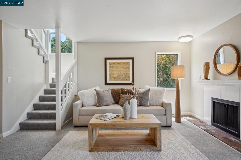Nestled in Walnut Creek’s coveted Overlook neighborhood, move in ready end unit! This townhome is one of an exclusive 7-home community—offering unmatched privacy just minutes from vibrant downtown. The light-filled main level boasts a spacious living room with a wood-burning fireplace, an open dining area, a well-appointed kitchen with abundant storage, and a powder room with in-unit laundry. Two private decks—one on each level—invite indoor-outdoor living, perfect for morning coffee or relaxing evenings. Upstairs, find two oversized bedrooms and a full bath—one with a walk-in closet, the other with a full wall of storage. With fresh interior paint, newer carpet, and updated appliances, this home is move-in ready. A detached 1-car garage provides added convenience and flexibility. Enjoy easy access to downtown Walnut Creek’s shops, restaurants, parks, BART, and Iron Horse Trail—plus zoning for top-rated Walnut Creek schools. This is a rare opportunity to own a well-cared-for townhome in a quiet, sought-after location that combines value, comfort, and lifestyle. Don’t miss this darling home!