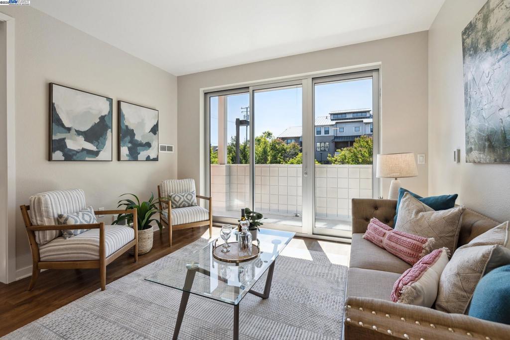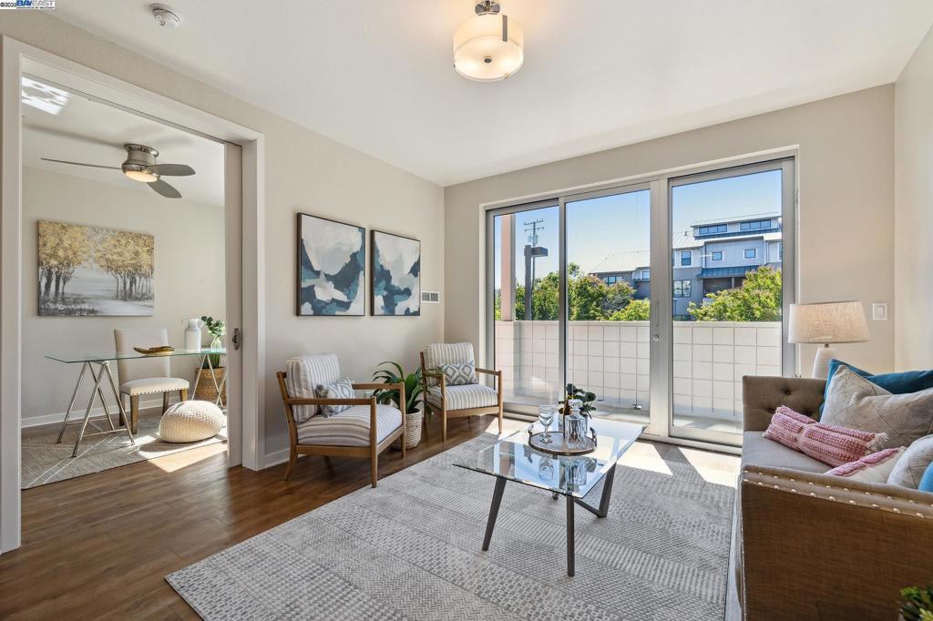Welcome to Phoenix Commons, a unique and vibrant 55+ Cohousing community located on the Estuary in Oakland's Jingletown neighborhood. Enjoy living independently in this one bedroom one bath condo with flexible space, perfect for office space, den, guest room, etc. Located on the eastern side of the building, the unit is bathed in morning light with filtered light softening the space in the afternoons. The unit boasts a full modern kitchen, high ceilings in-unit laundry capability, and more. HOA amenities include a library, exercise lap pool/hot tub, gym area, craft/hobby room, private community dock, guest accommodations, water garbage, internet and more. Close to Alameda's charming Park St business district, Bay Trail and public transit.