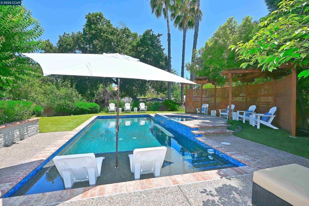 If you’ve been looking for privacy and security, this special home has it, tucked down a private tree-lined lane, fostering quiet and safety with no through traffic, it lives like a secluded summer refuge and resort! Forward thinking home preparedness and energy efficiency assets have been invested into this home at hundreds of thousands of dollars - Owned PV solar for home, EV charger, dual-fuel home generator, two zoned HVAC systems, newly redesigned heat-retaining PebbleTec pool and spa with Baja shelf, gorgeous no-water turf, vegetable garden and vineyard with room for you to expand both, two pergolas and separate BBQ island. These are excellent features to enjoy now and essential for future planning. This peaceful turn key home is ready for you to enjoy with resort level modernized interiors through-out. The spacious, newly renovated kitchen houses 2 islands, 2 sinks, 2 wine coolers, and a Sub-Zero fridge/freezer. Stylish bathrooms, hardwood floors, wool carpet, plantation shutters. French doors lead to tranquil gardens surrounding the pool, spa and fire pit to relax and enjoy the built-in comforts and filtered Mt. Diablo views. Video: https://youtu.be/vxQzZJlDpM8 and 3-D: https://my.matterport.com/show/?m=Vvr1ymnLpuK&mls=1
