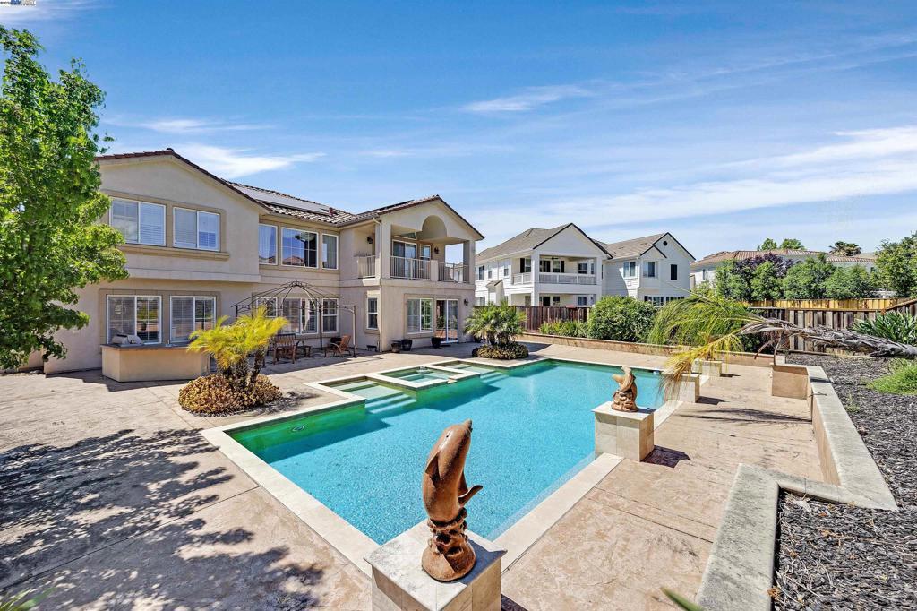 Luxury and location meet at 6013 Kingsmill Terrace, nestled in the gated Pinnacle Ridge enclave of Dublin Ranch. This exquisite Toll Brothers estate features 5 bedrooms, 5.5 bathrooms, and a grand 5,417 sq ft open-concept design. The interior boasts soaring ceilings, elegant finishes, and formal and casual living spaces. Outdoors, a private oasis awaits with a sparkling pool and spacious patio, perfect for entertaining on the expansive 15,210 sq ft (.35 acre) lot. Zoned for top-rated Green Elementary School, Fallon Middle School, and Dublin and Emerald Green High Schools, and backed by HOA perks including gate access, community pool, and tennis courts. Offered As-Is—an exceptional opportunity to personalize one of Dublin’s most prestigious homes.