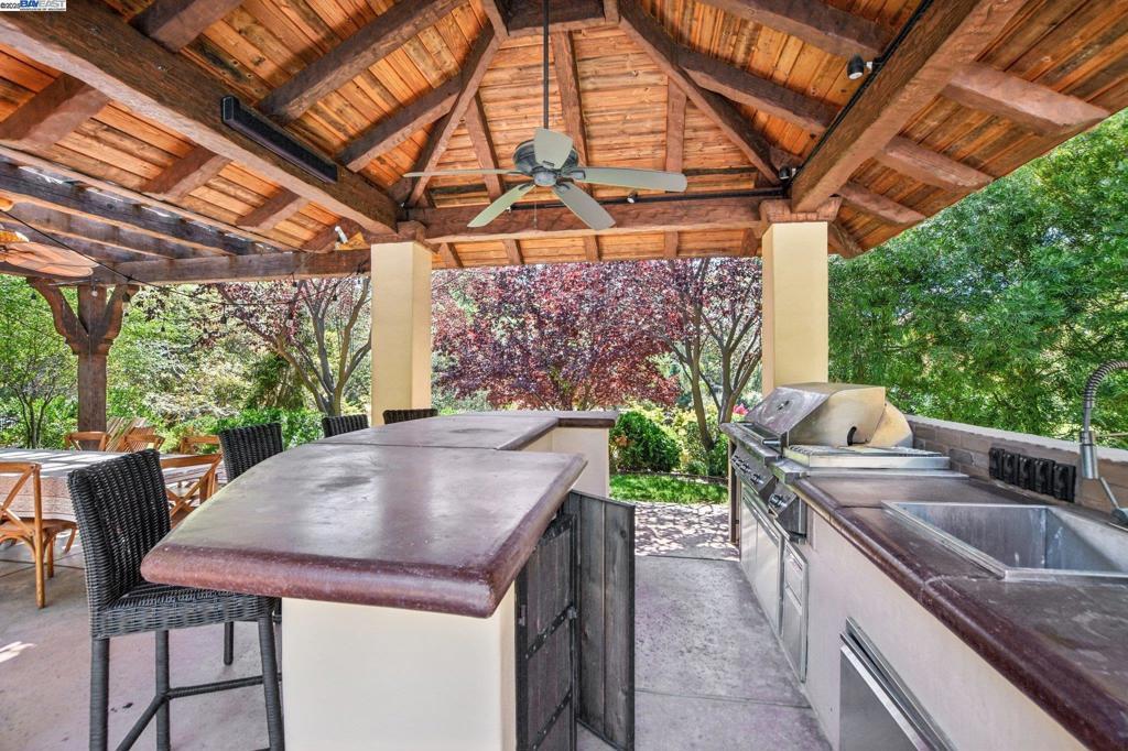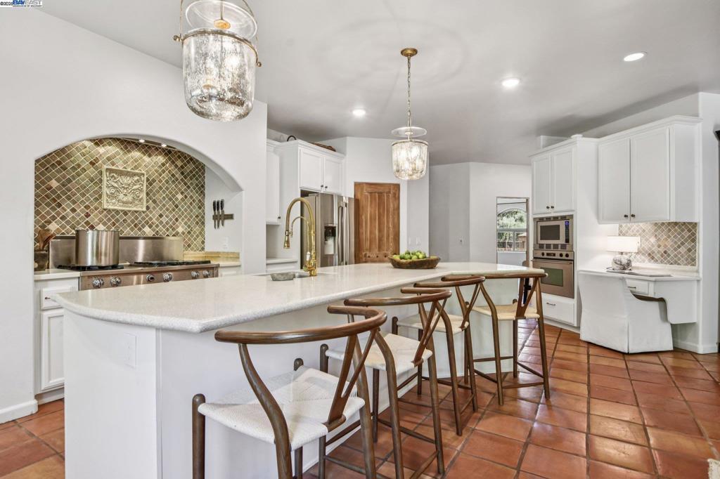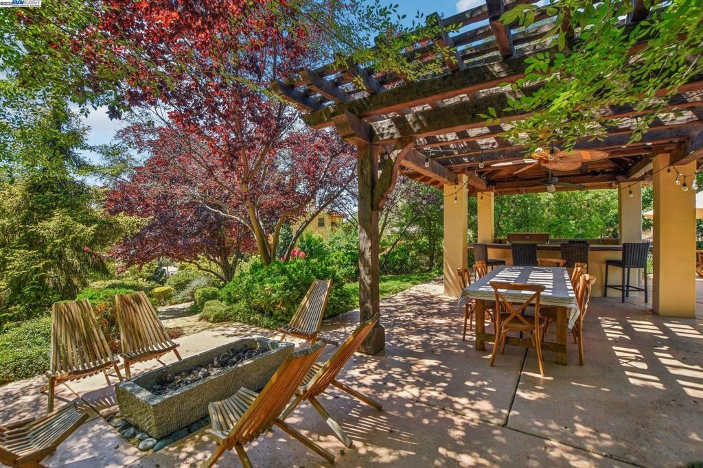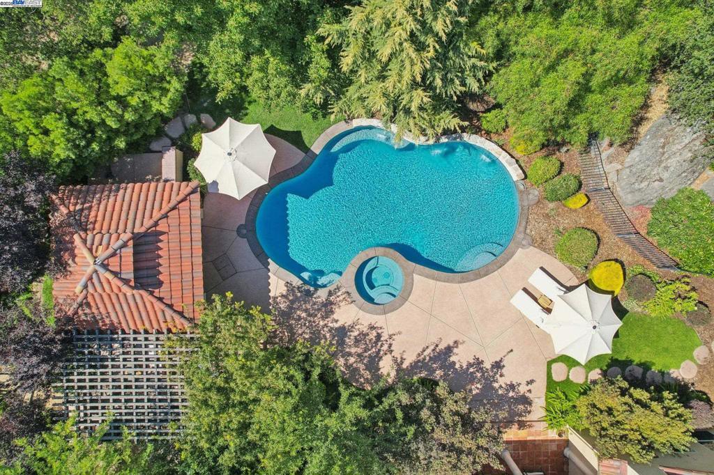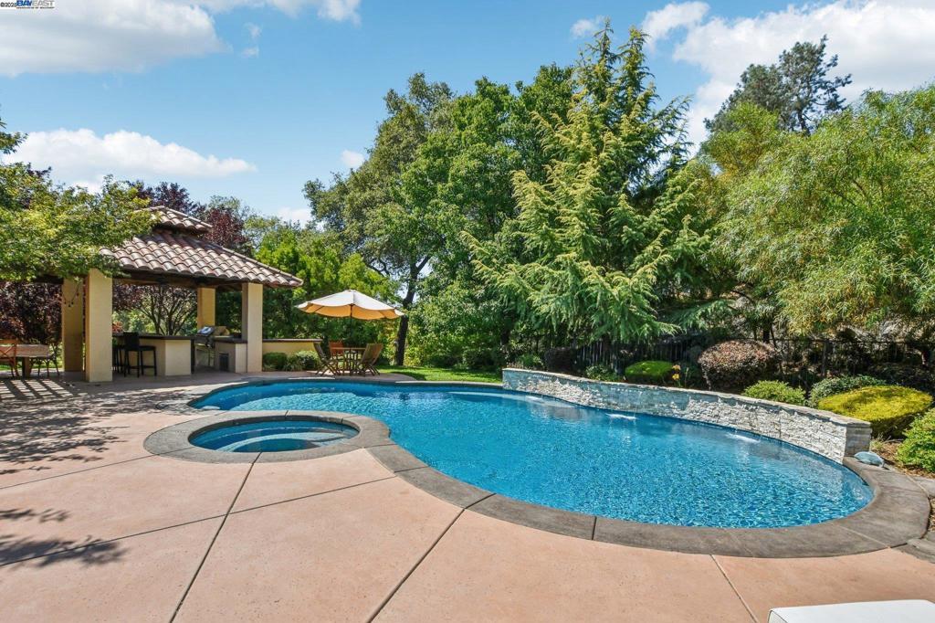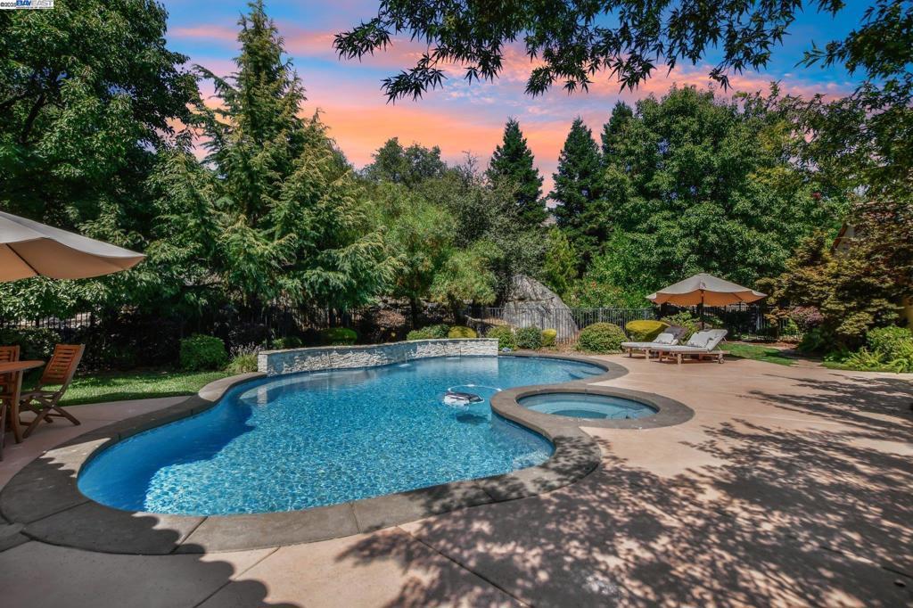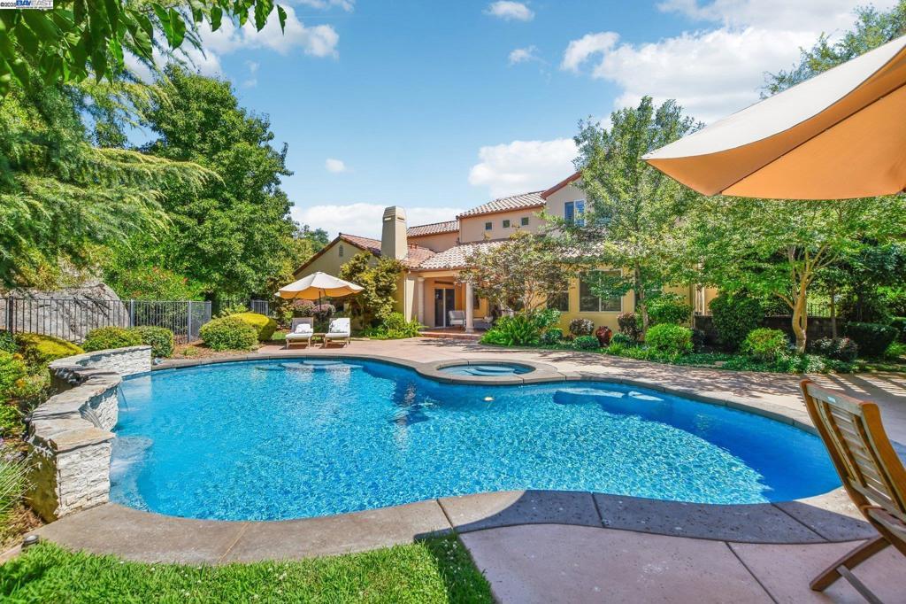 PRICE IMPROVEMENT! Welcome to this Santa Barbara-inspired estate tucked in the coveted Sterling Pointe community of Loomis. Set on 1.1 serene acres, this timeless custom home blends rich character with elevated design. Arched doorways, custom interior doors, and terra cotta tile flooring anchor the warm, elegant interiors, while hardwood bedrooms and recessed lighting elevate the finish. The open-concept family room flows into a culinary kitchen featuring Kerrock counters, DACOR oven, Dynasty cooktop with griddle, walk-in pantry, and island bar—ideal for entertaining. The main-level primary suite offers a fireplace, dual vanity, soaking tub, and direct patio access. A separate downstairs bedroom with its own entry offers privacy for guests or multigenerational living. A serene upstairs bedroom opens to a walk-out terrace, while the bonus room is wired with built-in surround sound. Step outside into a sanctuary: a resort-style pool with cascading waterfall, fully equipped outdoor chef’s kitchen with fridge and sink, a cozy firepit with ample seating, raised garden beds, fruit trees, and thoughtfully groomed grounds offer the ultimate space for relaxation or entertaining. Enjoy nearby access to scenic trails leading to Folsom Lake and the Sterling Pointe equestrian staging area.