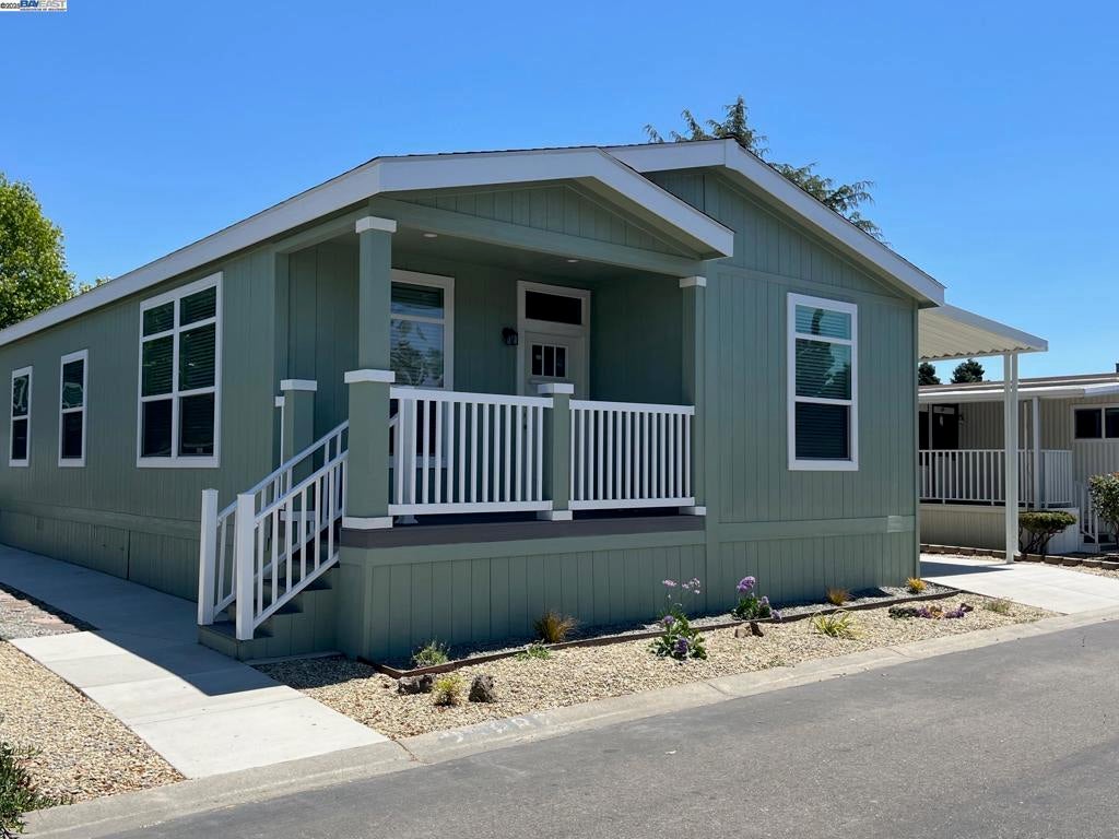 New 3 bedroom, 2 bath, manufactured home. Spacious living room with coffered ceiling, and recess can lites. Open kitchen with island, solid surface counters, and tile splash, New stainless steel appliances, refrigerator, gas stove, dishwasher and microwave. Primary bedroom with coffered ceiling, recess can lites. Primary bath with tile shower, linen closet, dual sinks and solid surface counters. Community is near shopping at Union Landing, freeway access, and more. Fireplaces: NO