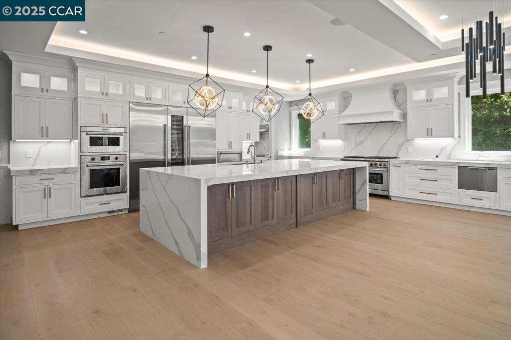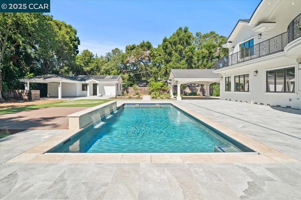 Discover sophisticated living in this newly built, solar-powered 8,297 sq ft estate on over an acre in Atherton. This residence offers 7 bedrooms, 7.5 bathrooms, and a guest house with 2 bed/2 bath. A gated entry, circular driveway, and fountain welcome you. Inside, a grand curved staircase leads to the luxurious primary suite with a fireplace and spa-like bathroom. The expansive patio features a fireplace, solar-heated 40' lap pool, Jacuzzi, terrace, mini golf, and an entertainment cabana. The lower level boasts a movie theater, sauna, gym, and wine cellar. The gourmet kitchen includes high-end appliances, a prep kitchen, and a 12-foot island seamlessly connecting to the family room. Located ideally between San Francisco and Silicon Valley, it's also close to Stanford University and tech hubs.