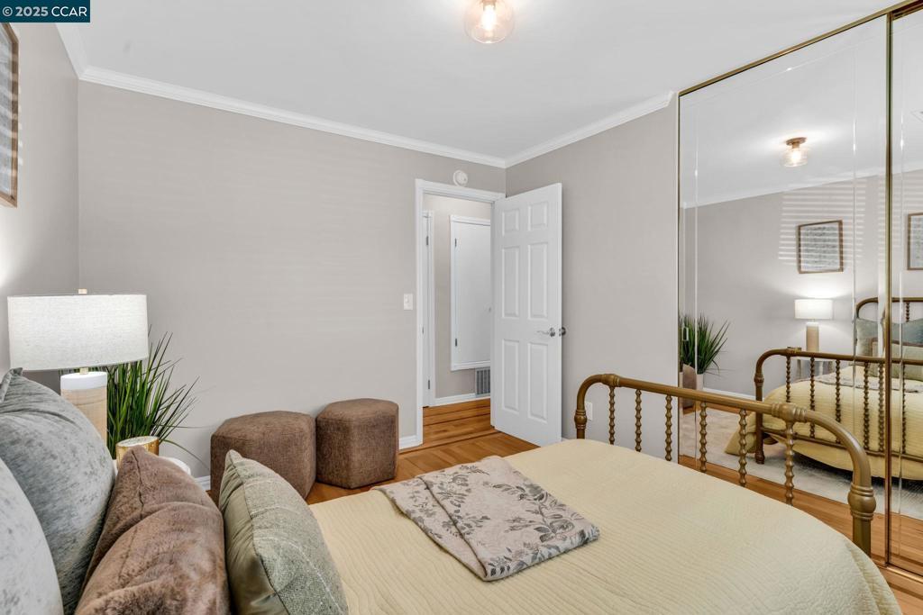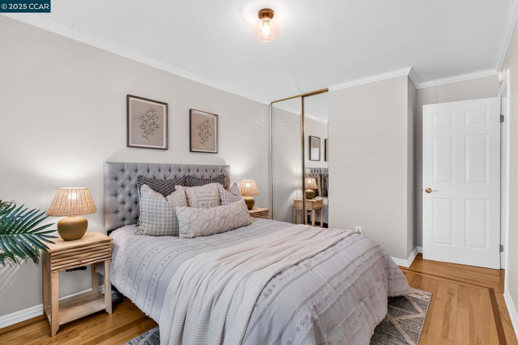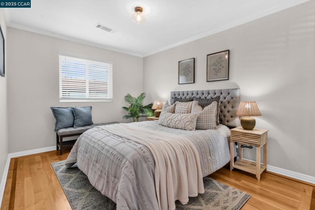 Charming Townhome with Custom Upgrades! Explore this well-maintained single-story townhome, conveniently located within 4 miles of Pleasant Hill / 680 freeway and Concord BART—ideal for those looking to downsize or escape high city prices. Inside, enjoy elegant ¾” hardwood maple flooring with cherry wood inlays, crown molding, and dual-pane windows that bring in natural light. The kitchen features stunning Costa Esmeralda granite countertops, Italian porcelain tile, and modern appliances, including a refrigerator, oven, microwave, flat cooktop, and dishwasher. The primary suite includes a remodeled bathroom and a walk-in closet, while all bedrooms offer mirrored closet doors. The fenced backyard (new fence from 3 years ago) is a gardener's dream, featuring; A caged area with mature organic blueberry bushes and a watering system; A dismantlable plant starter area and a hanging garden for climbing plants. Additional highlights include a workshop room with heat and AC in the garage, an ADT security system and ample parking with a 2-car driveway and detached 1-car garage. This unique find is perfect for families downsizing, or buyers seeking suburban value—offering a low-maintenance lifestyle with thoughtful upgrades, ready for you to move in and grow.