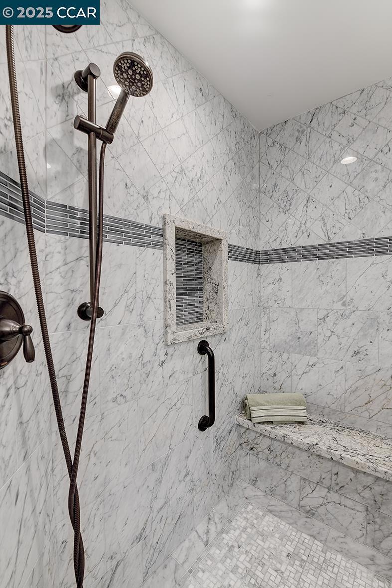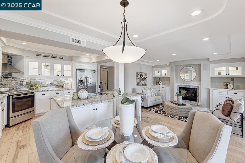 Elegant Custom Remodel in Rossmoor 55+ Community. Step into sophistication with this beautifully remodeled CO-OP, showcasing designer finishes throughout. Enjoy cove ceilings, recessed lighting, stone countertops, and stainless steel appliances. The kitchen features extended counters into the dining area, under-cabinet lighting, and windowed upper cabinets. A stunning electric fireplace, custom wood and tile flooring, and a versatile enclosed space perfect for an office or hobby room add to the appeal. Large stall shower in primary and walk in jetted bathtub/shower in 2nd bathroom. Located in the vibrant, gated Rossmoor 55+ community, this home offers more than just comfort—it offers a lifestyle. Indulge in golf, tennis, pickleball, bocce ball, hiking, fitness center, movie theater, dog park, hobby rooms, and 200+ clubs.