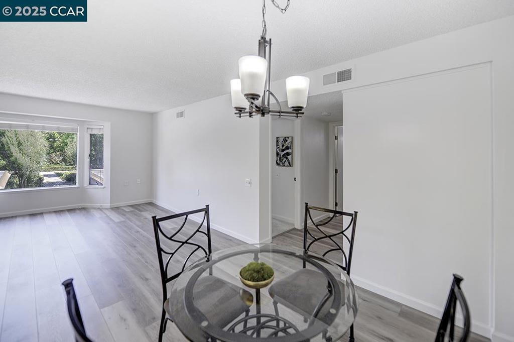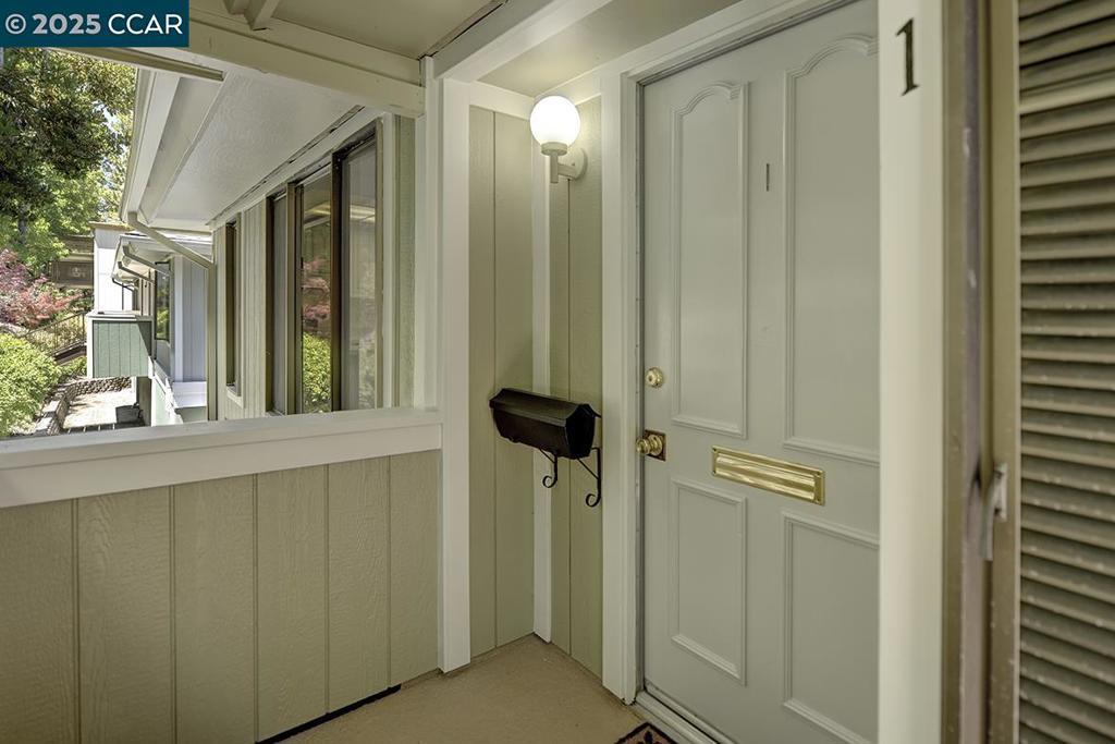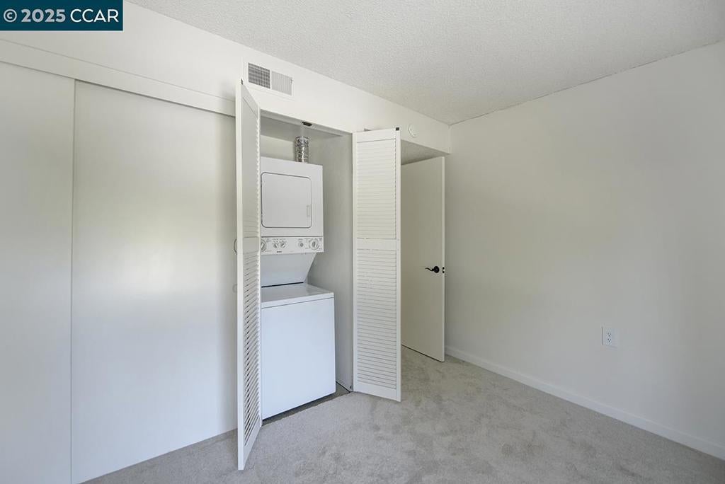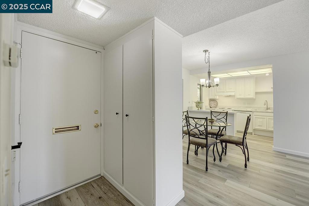 Desirable duplex Del Monte Co-op unit with only one shared wall! Enjoy your favorite beverage while looking at the garden view through a large window! Gorgeous NEW laminate flooring sure to please you. NEW kitchen counters, NEW paint and updated bathroom cabinet! Unit also has a stack washer/dryer for added convenience.Move-in ready and ideal for those seeking comfort, style, and convenience in a great location. A wonderful opportunity to own an inviting space that feels like home the moment you walk in! Located in Rossmoor, enjoy resort-style living with golf, swimming, tennis, fitness center, hiking, concerts, dances, clubs, bridge (games), studios for art, ceramics, art, woodworking, lapidary and more! Take the next step in life and embrace luxury, community, and relaxation in beautiful Walnut Creek. Covered Parking 1411 Space 2 with storage closet. Homes.com for 360 degree Matterport tour and a floor plan with dimensions. Enter in Entry 6 building at back on right. Carport #5 under unit.
