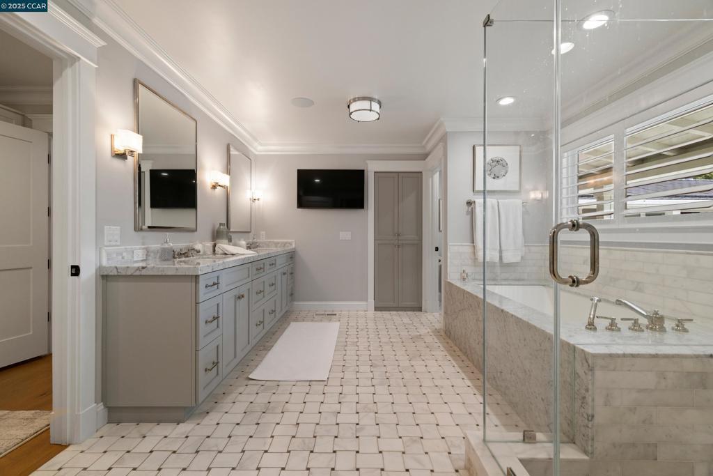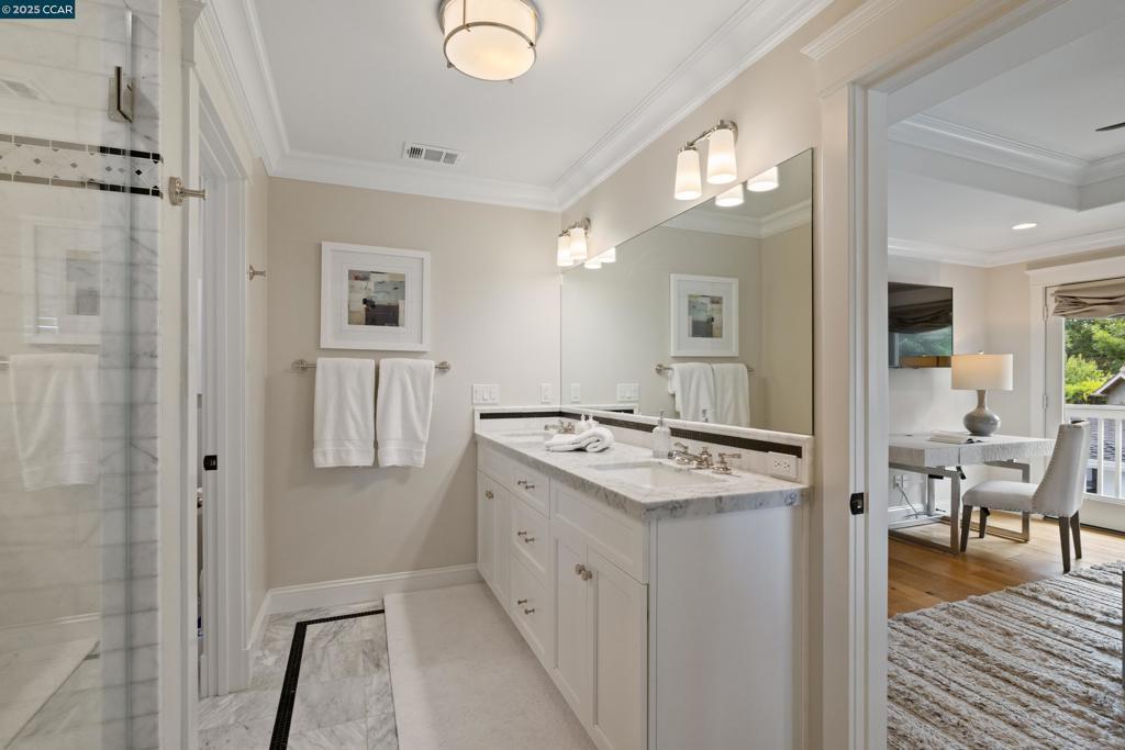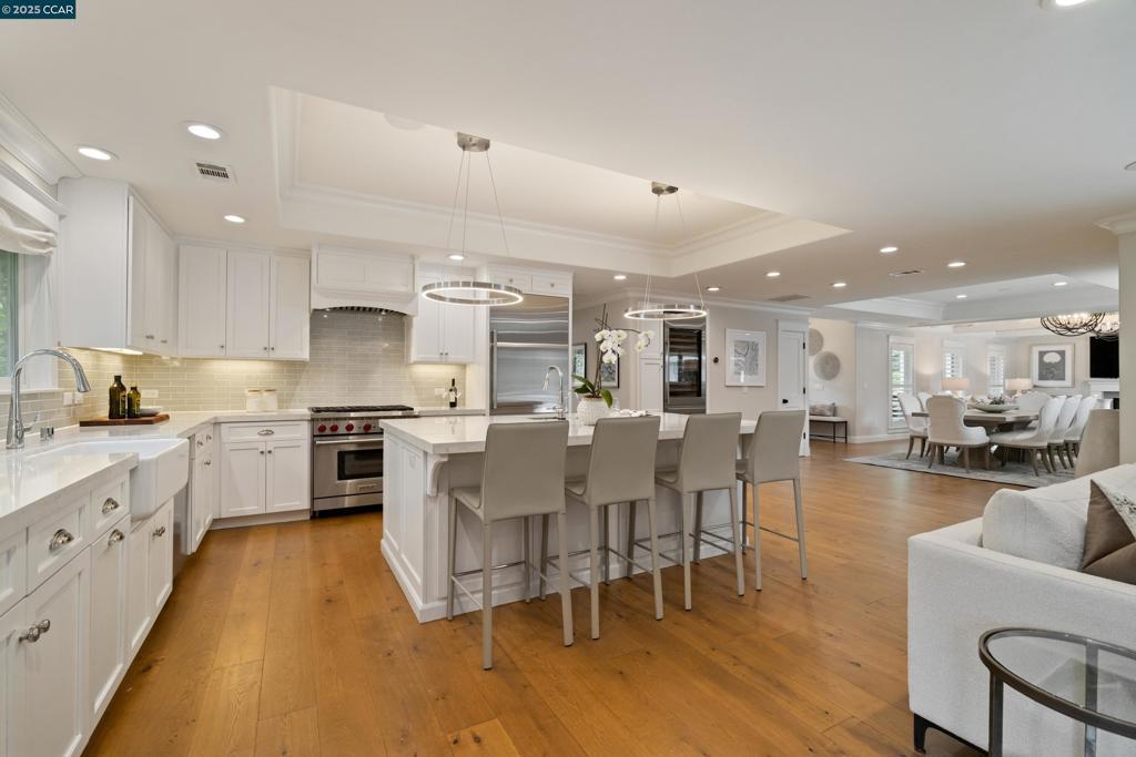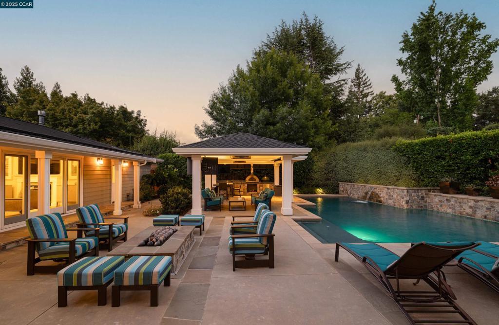 Just a block from downtown Danville and the Iron Horse Trail, this stunning 5-bedroom, 4-bathroom (2 half baths) home provides a sophisticated retreat in one of the most charming towns in the Bay Area! The home features a remodeled and open chef’s kitchen with premium stainless steel appliances, including a Wolf range, all opening into a spacious great room with a gas fireplace. There's two bedrooms on the main level (including primary) plus a separate office and 3 bedrooms upstairs (including an additional ensuite bedroom). Enjoy the formal but open living and dining spaces that flow effortlessly into the ultimate indoor-outdoor lifestyle. Step into your super private backyard oasis complete with a sparkling pool, hot tub, built-in BBQ, outdoor living room with dual TVs, and built-in heaters—ideal for year-round enjoyment. Napa meets the Bay Area at 125 El Dorado in Danville! What isn't to love?