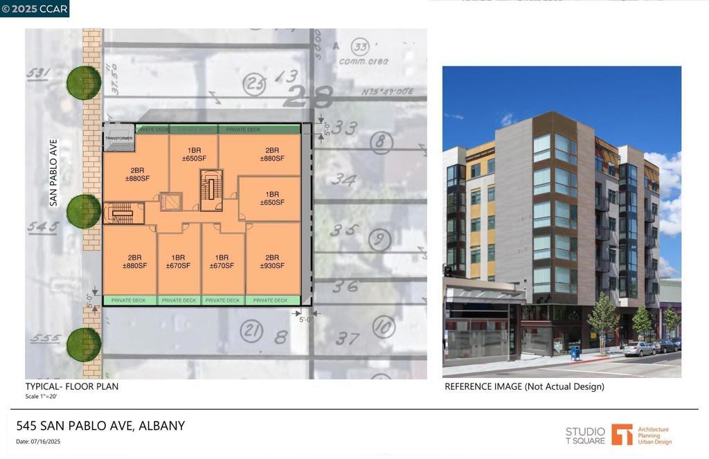 Prime 40-Unit Development Opportunity in the Heart of Albany’s Business District. This is a rare and highly desirable opportunity to develop a 40-unit residential project in the vibrant San Pablo Avenue corridor, Albany’s premier commercial district. The property is ideally positioned near a dynamic mix of national retailers, thriving small businesses, and high-traffic corporate tenants. Proposed plans call for a six-story, 40-unit. 50% 1BR/1BA, 50% 2BR/1BA with 2BR/2BA units. SPC zoning district, which has no maximum residential density limit. Unbeatable Location. Just a 5-minute walk to Sprouts Farmers Market, and a 4-minute walk to El Cerrito Plaza, El Cerrito Plaza BART Station. Minutes to Ranch 99 Market. Solano Ave's bustling commercial strip and the merging Gilman District. Easy access to 1-80 and I-580. Short drive to Berkeley, Emeryville, Oakland, and San Francisco. This is a unique chance to invest in one of the East Bay's most sought-after neighborhoods. A top-ranked public school system. Offering long-term growth potential in a transit-rich, community-oriented location.