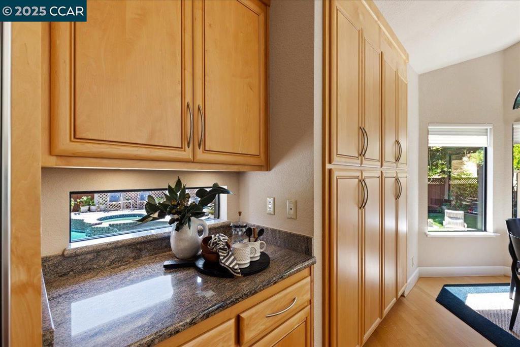 Remodeled and upgraded Blackhawk Country Club jewel on one of the largest homesites in the Fox Creek area. BRAND NEW ROOF IN JULY, 2025. Luxurious main floor primary suite with sitting area, fireplace, and professionally designed, expansive walk-in closet. Remodeled entertainer's kitchen w/enormous granite center island, bar seating, floor to ceiling cabinets many with pull-out drawers, Sub-Zero fridge and separate wine refrigerator, all bathed in sunlight. Gathering room, open to the kitchen, with custom fireplace flanked by built-in bookcases and cabinets. Stunning marble half bath. Second level large office/library with three walls of custom built-in cabinets, (does not have a closet), bookcases, file drawers, Two secondary bedrooms with custom closets. Fifth bedroom with cabinets, bookcases, desk (does not have a closet) could also function as a bonus room. Remodeled upper level full bathroom with marble counters, double sinks, sconces and tub/shower. Custom lighting throughout the interior of the home. Pool, spa, gazebo, and patio for outdoor entertaining. Full 3-car garage with built-in storage cabinets. Manicured landscaping on .39 acres of peaceful tranquility. Highly rated San Ramon Valley Unified School District schools.