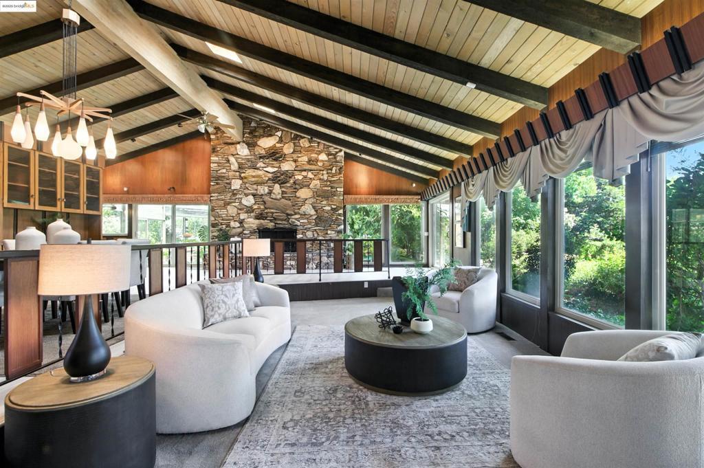 Custom Estate on Nearly Half an Acre with Sweeping Mt. Diablo Views! Welcome to 3112 View Drive — a one-of-a-kind, custom-built home perched on two sprawling lots totaling nearly 17,000 sq ft. Built in 1970 and thoughtfully maintained, this home exudes character and vintage charm, complete with beautiful and exquisite petrified wood rock masonry fireplaces and rock walls throughout. Boasting 4 spacious bedrooms and 4 full bathrooms, plus multiple dedicated office spaces, this flexible layout is ideal for multi-generational living, working from home, or simply spreading out in style. Enjoy brand new carpet and flooring, along with gorgeous granite countertops that elevate the heart of the home. Beautiful vaulted ceilings with wood beams add warmth, character and timeless style to the interior. The crown jewel? An indoor pool that brings year-round resort-style living right to your doorstep, perfect for entertaining or unwinding no matter the weather. Complete with two full bathrooms for changing after your swim. With a 3-car garage with its own half bath, ample outdoor space for gardening or relaxing surrounded by trees and lush landscaping, plus potential for an ADU or expansion, this rare property offers both form and function in a coveted hillside setting.
