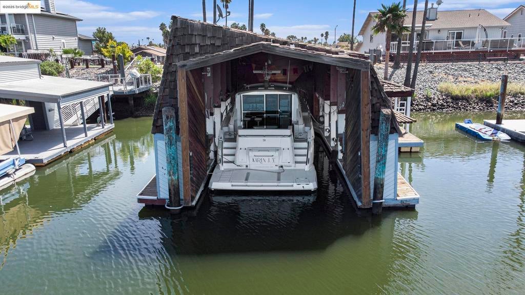 Delta Waterfront Lot with Fully Improved Boat Shed – Ready to Build! This rare waterfront parcel comes fully equipped with power, water, and sewer already in place—just bring your home plans! The custom boat shed features 200-amp electrical service, dual 50-amp boat outlets, multiple 20-amp outlets, a full bathroom with shower, kitchenette with appliances, laundry, and generous storage areas. Designed for stability with earthquake and wind tie-downs, the dock feels solid underfoot. Moorage for a 60’ boat inside the shed, plus side ties for additional vessels. Secure gated access with deadbolts throughout. Enjoy life on the Delta now while you plan your future dream home!