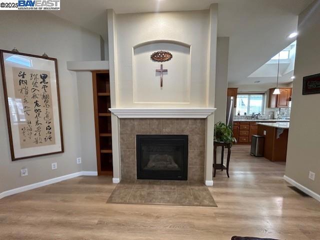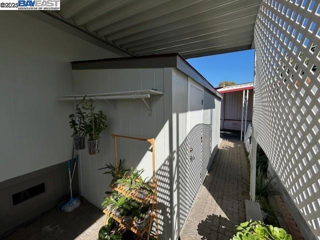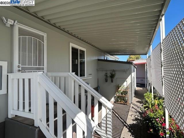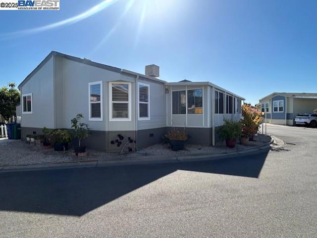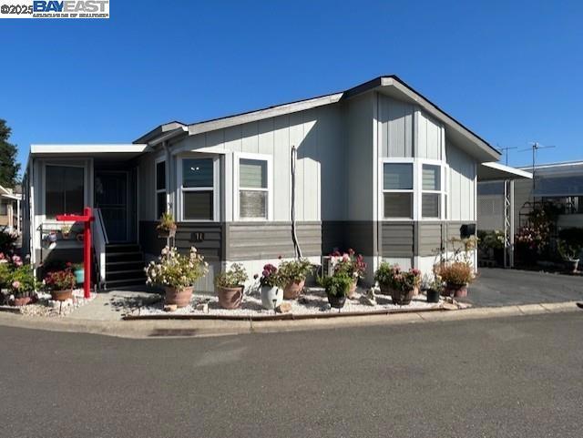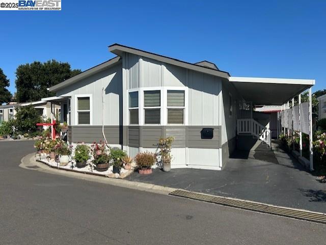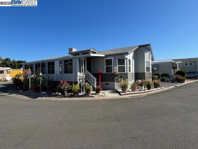 Lovely manufactured home in Hayward Mobile (adult 55+ park) features: 2 bedrooms; den; 2 full baths; living room with fire place and two cell clear story; spacious kitchen with island and nook area; indoor laundry room with washer and dryer; primary bedroom with walk in closet and private glamour bath with soaking tub and separate stall shower; large enclosed porch; corner lot, large custom shed, low space rent only $529 per month & much more. Fireplaces: GAS,GSR,LIV
