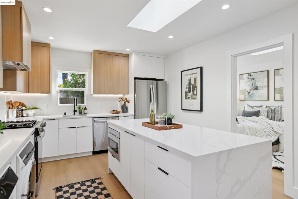Back on market, no fault of the property! Welcome to 1612 Carleton Street: a fully permitted, down-to-the-studs remodel & addition that’s been thoughtfully updated with all-new systems including electrical, plumbing, and a high-efficiency heat pump for year-round comfort. This 2-bed, 2-bath home perfectly blends contemporary style with timeless appeal. Discover vaulted ceilings & strategically placed skylights that fill the home with natural light. The bright modern kitchen boasts stainless steel appliances, sleek quartz countertops, under cabinet lighting & waterfall island w/ seating. The thoughtful layout flows seamlessly into the open floor plan living room. The primary suite offers a serene retreat w/ glass doors leading to the redwood deck, keeping you connected to nature. Outside, enjoy your private oasis with a grassy lawn perfect for lounging & outdoor dining and a large shed for your storage needs. Additional features include washer and heat pump dryer, new insulation throughout, new roof, recessed lighting, new floors & tankless water heater. Located in the heart of Berkeley you're minutes away from Cal, Berkeley Bowl, BART & hundreds of cafes, restaurants & small businesses. Don't miss this rare opportunity to live the Berkeley lifestyle in modern luxury.