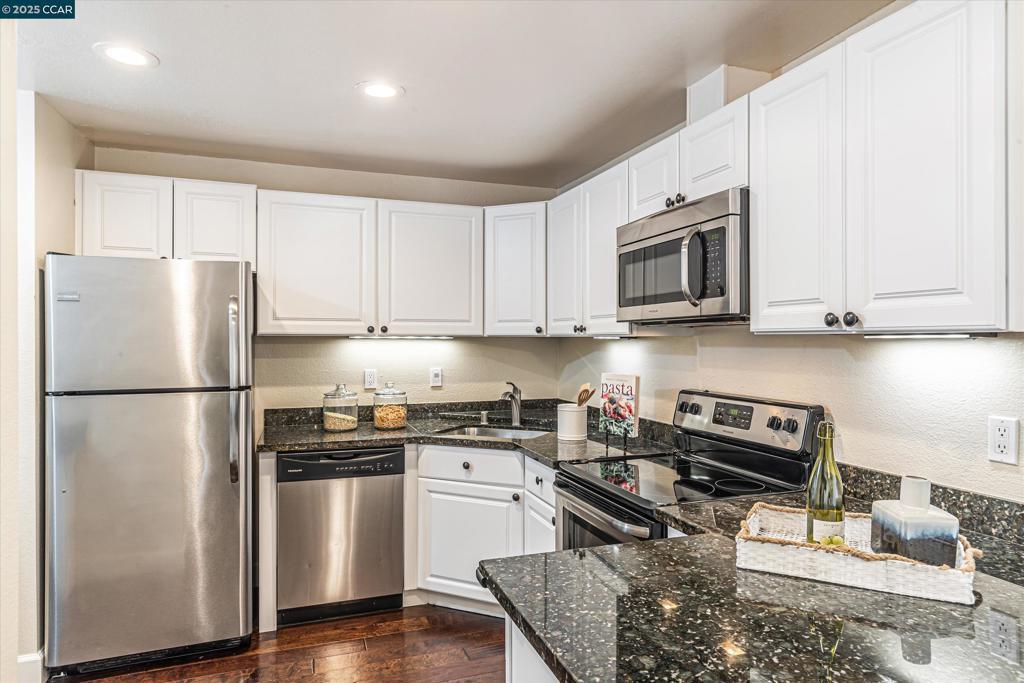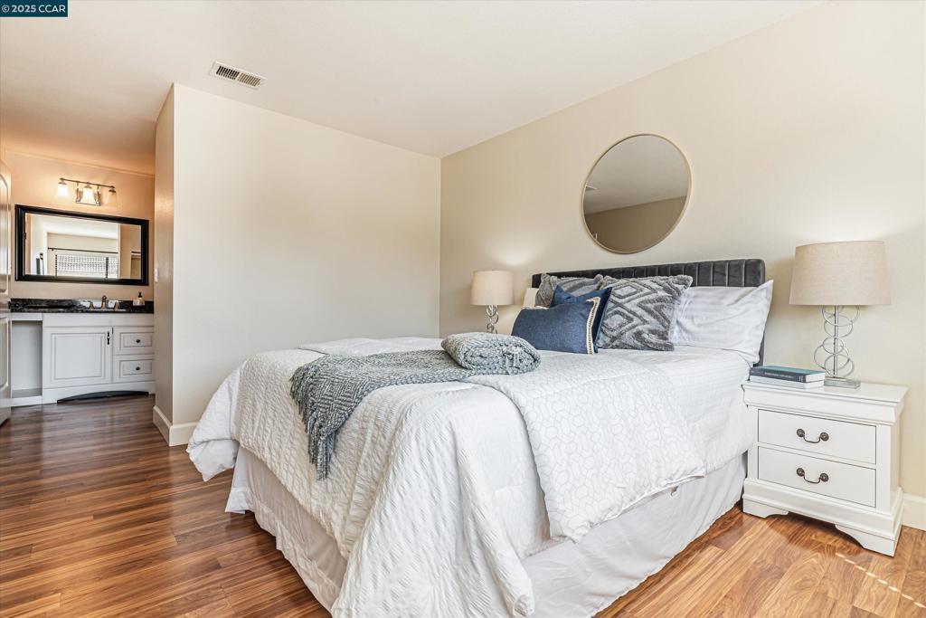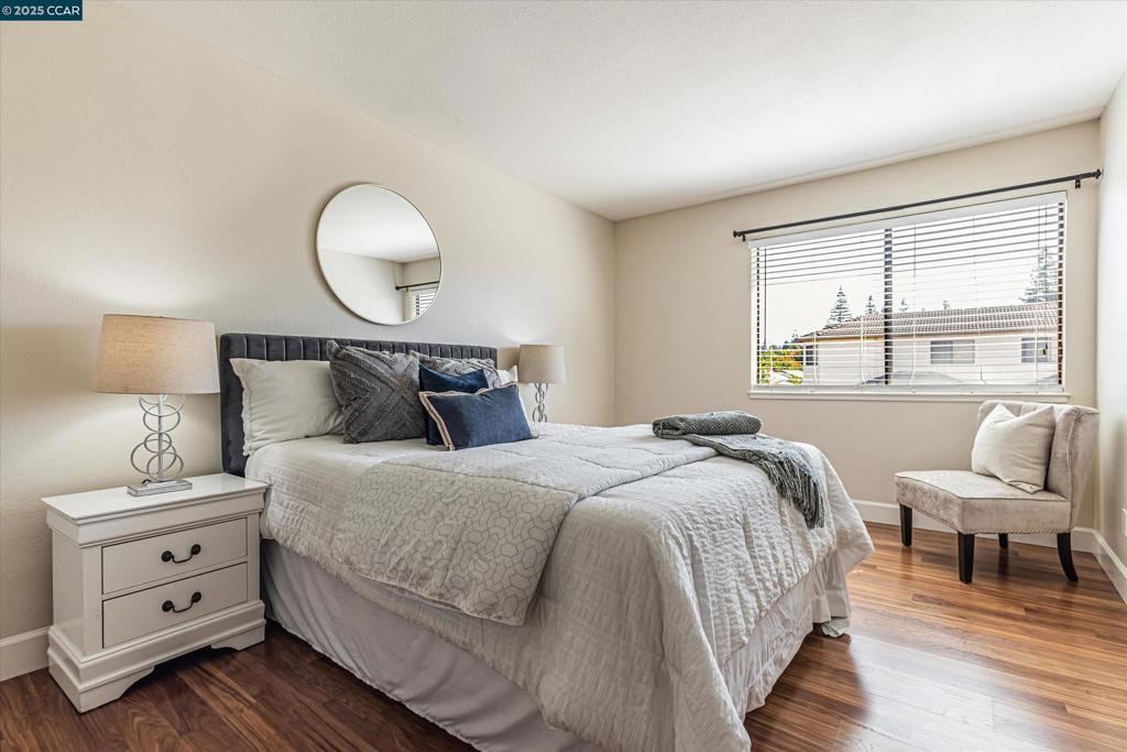 Nestled in the heart of Concord, this beautifully updated upper level residence offers a perfect blend of comfort, convenience, and modern living. Situated in a conveniently located community, this property presents an ideal opportunity for families, professionals, or anyone seeking a cozy abode in a welcoming community. - Prime Location: Close to shopping, parks, and schools, near (but not right next to) the pool. Newer: Plank flooring, appliances, plumbing fixtures, switches/outlets/fixtures and window coverings, - Remodeled: Kitchen and bathrooms - Spacious Interior: Bright living space with lots of natural light. - Comfortable Bedrooms: 2 spacious, carpeted bedrooms with ample closet space. - Outdoor: Roomy balcony with beautiful views of Mt. Diablo. Two assigned parking spaces, one is covered.