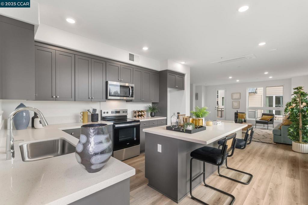 Limited Time Offer! Get $25,000 credit for closing costs, solar purchase or upgrades if you are in contract by Nov. 15, 2025! Welcome to Fusion! This stunning new construction townhome offers the perfect blend of comfort, style, and functionality. With 3 bedrooms, 2.5 bathrooms, and 1804 square feet of thoughtfully designed living space, you’ll love coming home to Fusion. Inside, expansive windows flood the open-concept layout with natural light. The gourmet kitchen is the heart of the home, featuring shaker cabinetry, quartz countertops, a designer tile backsplash, and a large island—ideal for casual dining and entertaining. Step out onto 2 private balconies! The spacious primary suite, which is on the main level, offers a spa-like bathroom & walk-in closet. A convenient powder bathroom & separate laundry closet complete the main level. Upstairs, two additional bedrooms & a full bath add flexibility and convenience.Tandem two-car garage & solar panels. Part of a boutique community of 55 residences, Fusion offers stylish, low-maintenance living close to top-rated schools like Moreau Catholic high school, Cal State East Bay & is close to downtown Hayward, dining, shopping, and major commute routes including BART, 880, 238 & San Mateo Bridge.