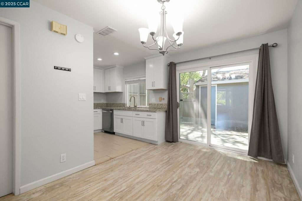 Welcome to this inviting end-unit townhome that's perfectly situated on the Concord/Walnut Creek border, offering the ideal blend of convenience and community living. Located in the sought-after Cherrywood neighborhood, this home provides easy access to top-rated schools, shopping, dining, parks, and BART for a stress-free commute. Inside, discover a spacious and light-filled layout featuring a comfortable living room with a wood-burning fireplace and expansive windows that create a warm, welcoming atmosphere. The remodeled kitchen boasts stainless steel appliances, stone countertops, and abundant storage, opening to a dining area with sliding glass doors that lead to your private enclosed patio to detached garage. Perfect for relaxing or entertaining! Convenient laundry hookups are located in the main-level half bath. Upstairs, you’ll find a bright guest bedroom with a walk-in closet, a full hallway bath, and a serene primary suite with an attached bathroom. Recent updates include a newly replaced garage man door, and new dual paned-windows throughout. Enjoy Cherrywood’s wonderful amenities, including a community pool, tennis courts, and open green space. This home offers comfort, functionality, and an unbeatable location in one exceptional package. Come see!