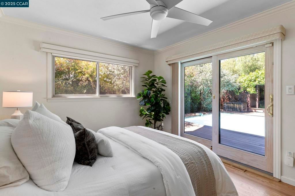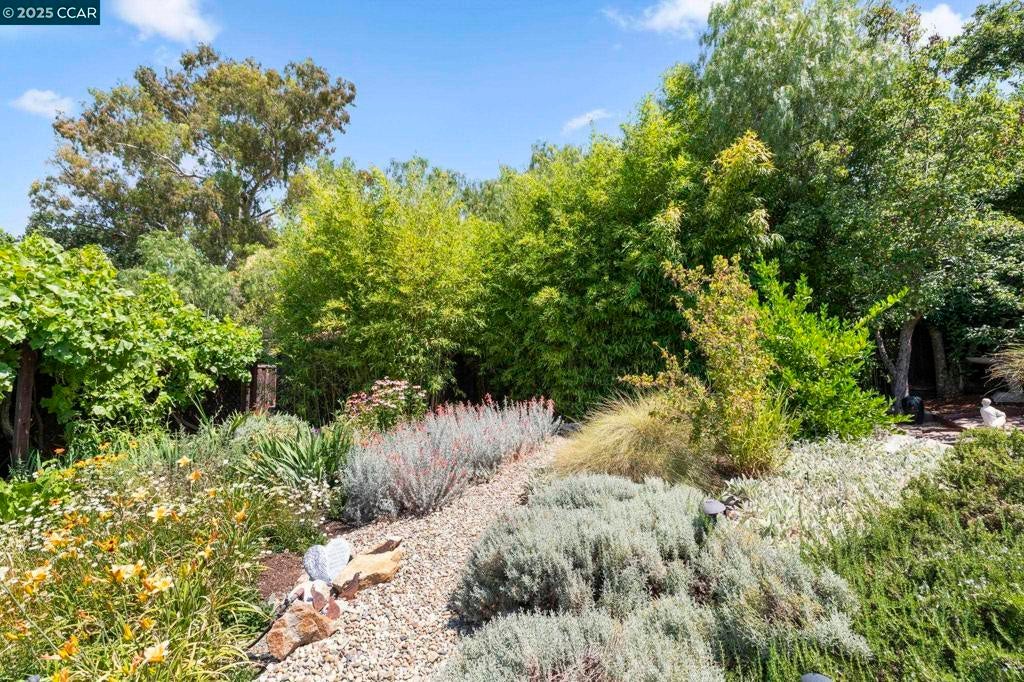 Welcome to this enchanting single-story residence, lovingly & meticulously maintained, now on the market for the first time in over 50 years. Experience lush, mature landscaping that only time can offer. Remember, "You can't buy time!" Offering a blend of classic charm & modern comforts, perfect for those seeking a peaceful retreat. Inviting foyer opens to a spacious living rm & dining rm with large picture windows showcasing the manicured garden. Kitchen with eat-in dining, granite counters, hardwood floors & sliding glass door has views to a stunning backyard oasis, pool & terrace with views. Primary suite has two closets w/ ample storage, bookcases & glass doors leading to a private patio, deck, spa & beautiful foliage for privacy. Two additional bedrooms, one with glass doors leading to the backyard, and two updated bathrooms. Spacious garden studio for all of your gardening tools or storage. Second shed for additional storage. 2-car garage w/ built-in cabinets. Situated on a generous & fully useable lot, this home is a gardener's paradise.Expansive grounds provide endless opportunities for creativity & relaxation. Sparkling pool, set amidst privacy and tranquility. Minutes away from award-winning schools, Downtown Danville shopping, restaurants & easy commute location.