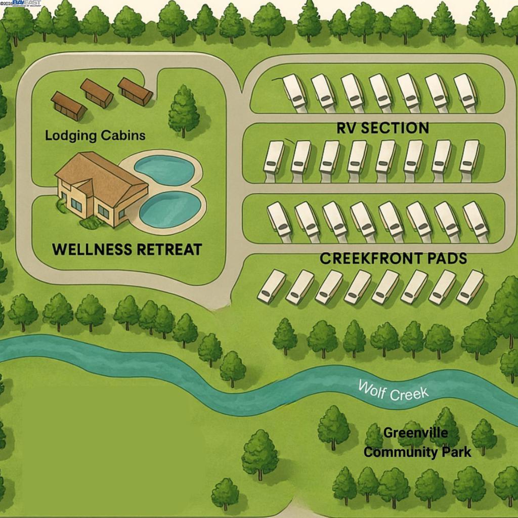 ZONED Prime Recreational (REC-P) allowing multiple uses: RV Resort (14 sites per acre) / Boutique Lodging / Event Venue / Adventure Tourism / Health & Wellness Resort / Manufactured Home Community if recreation oriented. Property includes existing well producing 20 gallons per minute at 64° from 60 foot depth, with option to drill deeper to access geothermal temperatures. 1,101 feet of creek frontage. CURRENT INCOME from 9 RV hookups with full utilities (water, sewer, electrical). Two 40’ luxury fifth wheel trailers and a 1,400 SqFt Trex deck included. UTILITIES: City water, sewer, and power with new underground wiring in place. Located within 1 mile of new restaurants, grocery, and gas station. Lake Almanor 9 miles / Plumas National Forest 31 miles / Lassen Volcanic Park 40 miles. Regional tourism exceeds 3M annual visitors creating strong year-round demand. Positioned for expansion into RV resort, lodging, wellness, or mixed-use development. See attached ZONED Prime Recreational (REC-P) allowing multiple uses: RV Resort (14 sites per acre) / Boutique Lodging / Event Venue / Adventure Tourism / Health & Wellness Resort / Manufactured Home Community if recreation oriented. Property includes existing well producing 20 gallons per minute at 60° from 60 foot depth, with option to drill deeper to access geothermal temperatures. 1,101 feet of creek frontage. CURRENT INCOME from 9 RV hookups with full utilities (water, sewer, 30/50 amp electrical). Two 40’ luxury fifth wheel trailers and a 1,400 SqFt Trex deck included. UTILITIES: City water, sewer, and power with new underground wiring in place. Located within 1 mile of new restaurants, grocery, and gas station. Lake Almanor 9 miles / Plumas National Forest 31 miles / Lassen Volcanic Park 40 miles. REGIONAL TOURISM exceeds 3M annual visitors creating strong year-round demand. POSITIONED FOR EXPANSION into RV resort, lodging, wellness, or mixed-use development. See attached Pro forma analysis which shows scalability from 9 existing RV pads to a 60+ site resort model producing NOI over $576K annually, with valuations between $4.8M and $7.2M depending on cap rate.