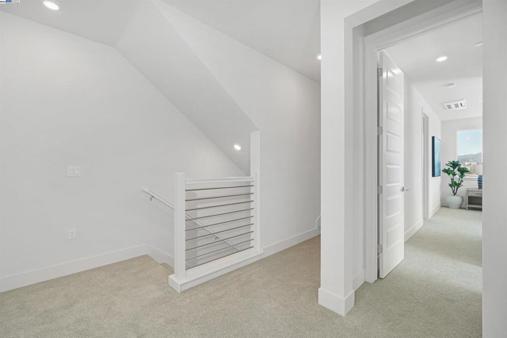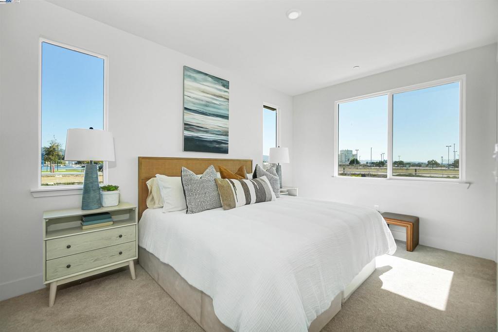 MOVE-IN READY! This exceptional corner residence at Waterside by Landsea Homes offers over 2,581 sq. ft. of modern living with 4 bedrooms and 3.5 baths, including a full first-floor en-suite bedroom with its own private bath. The expanded main living floor features a bright open layout with a chef’s kitchen appointed with Samsung stainless steel appliances, quartz countertops, and abundant cabinetry. Upstairs, the primary suite includes a walk-in closet and spa-inspired bath, while secondary bedrooms share a thoughtfully designed hall bath with laundry nearby for convenience. The top floor is an entertainer’s dream, complete with a bar sink, beverage fridge, and access to a private rooftop deck showcasing panoramic views of the Oakland Hills, estuary, marina, Coast Guard Island, and beyond. A two-car garage with EV outlet, solar installation (lease or purchase), energy-efficient systems, smart home features, and a 10-year builder warranty add everyday ease. Set within the $53M Alameda Marina waterfront redevelopment, residents enjoy parks, trails, the historic boathouse, beaches, dining, and easy access to the SF Bay Ferry—an opportunity to own a legacy property in one of Alameda’s most vibrant waterfront communities.