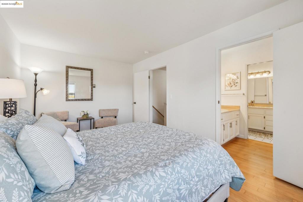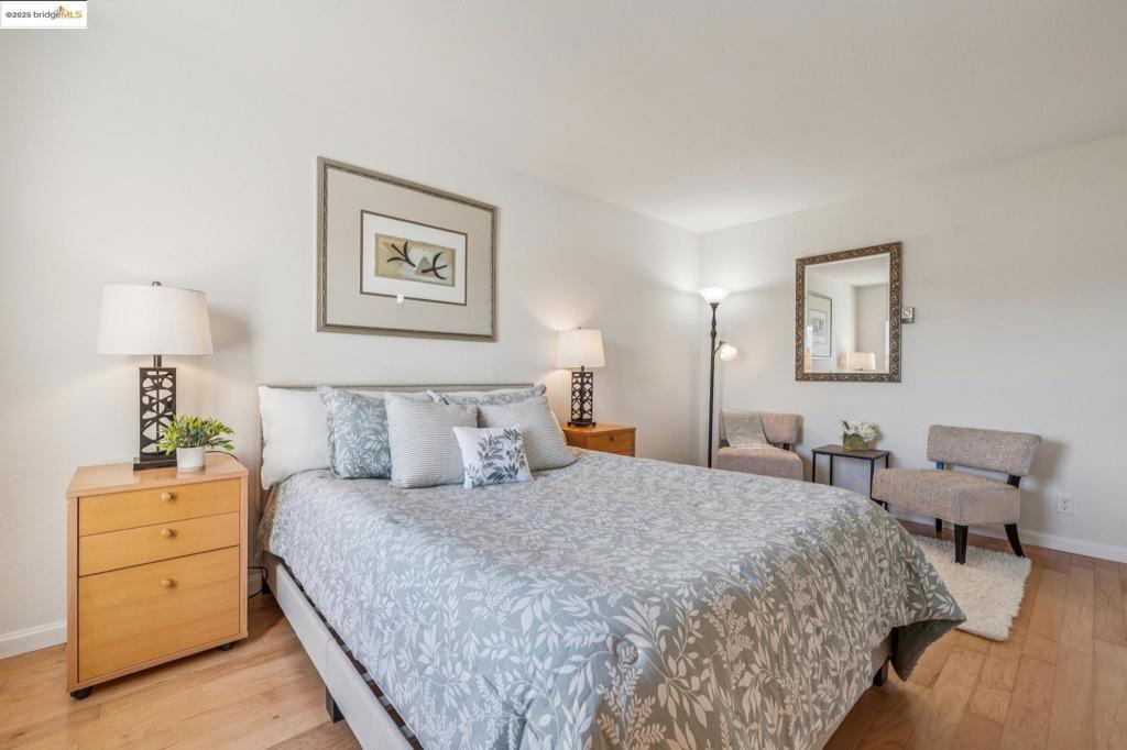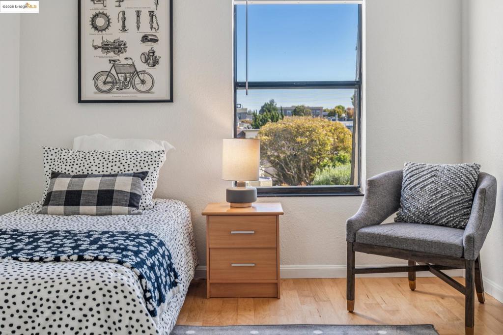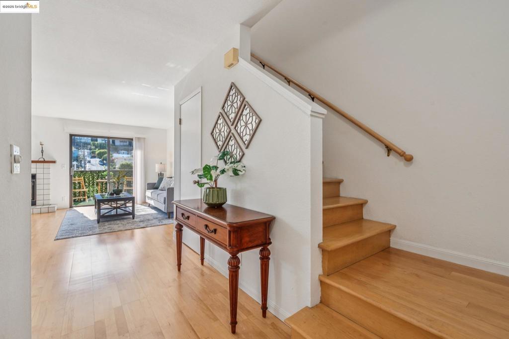Welcome to 518 Kains Ave#103, a beautifully updated townhome-style condo in a boutique 4-unit complex at the heart of Albany. This two-level home offers a floor plan with great flow, hardwood flooring, generous storage, and abundant natural light from three south-facing windows. On the first floor, it greets visitors with a fireplace, guest half bathroom, and a breakfast bar, in addition to comfortable dining and living spaces. The kitchen is well-maintained with solid wood cabinets and comes with a brand new stove. The second floor features two spacious bedrooms with large walk-in closets and hardwood flooring. The main bathroom area has two large countertops, toilet and tub and has been refreshed with new vanities, mirrors, lights, toilets. Additional upgrades include new faux wood blinds and fresh paint throughout. The unit also enjoys a private balcony with serene Albany views, perfect for morning coffee or evening relaxation, and two parking spaces with additional storage in the carport, which offer great convenience in this popular residential neighborhood. The home is particularly well located, steps away from El Cerrito Plaza, Solano Avenue, BART, and the top-rated Albany schools. In move-in ready condition, it combines comfort, style, and rare accessibility.