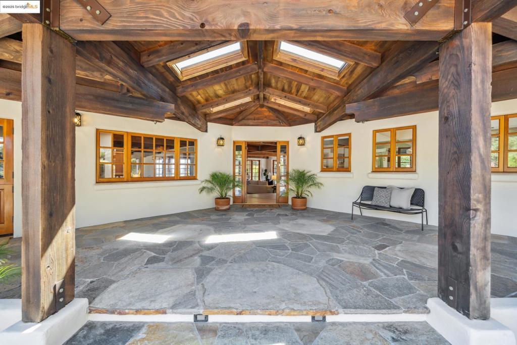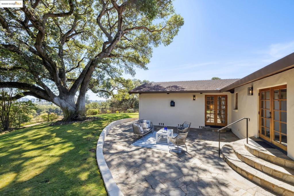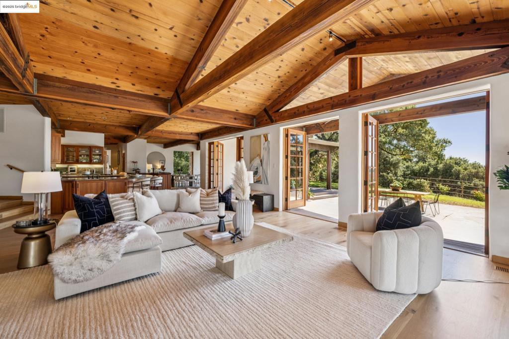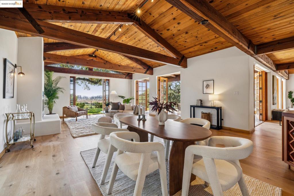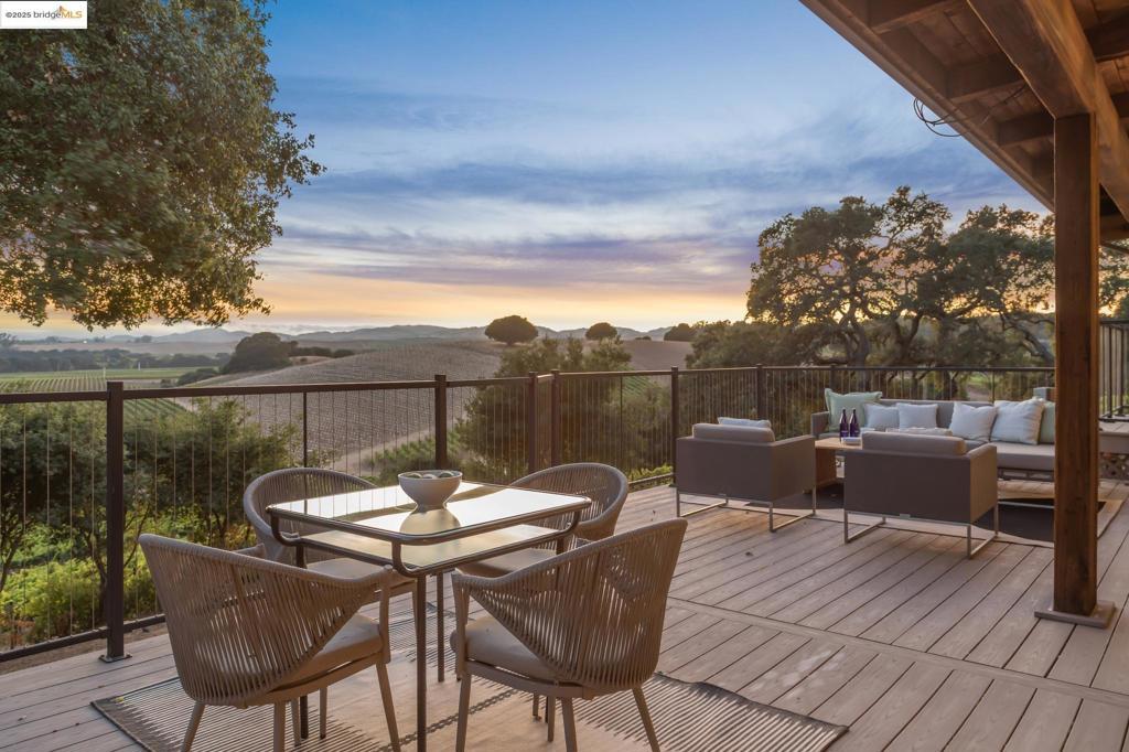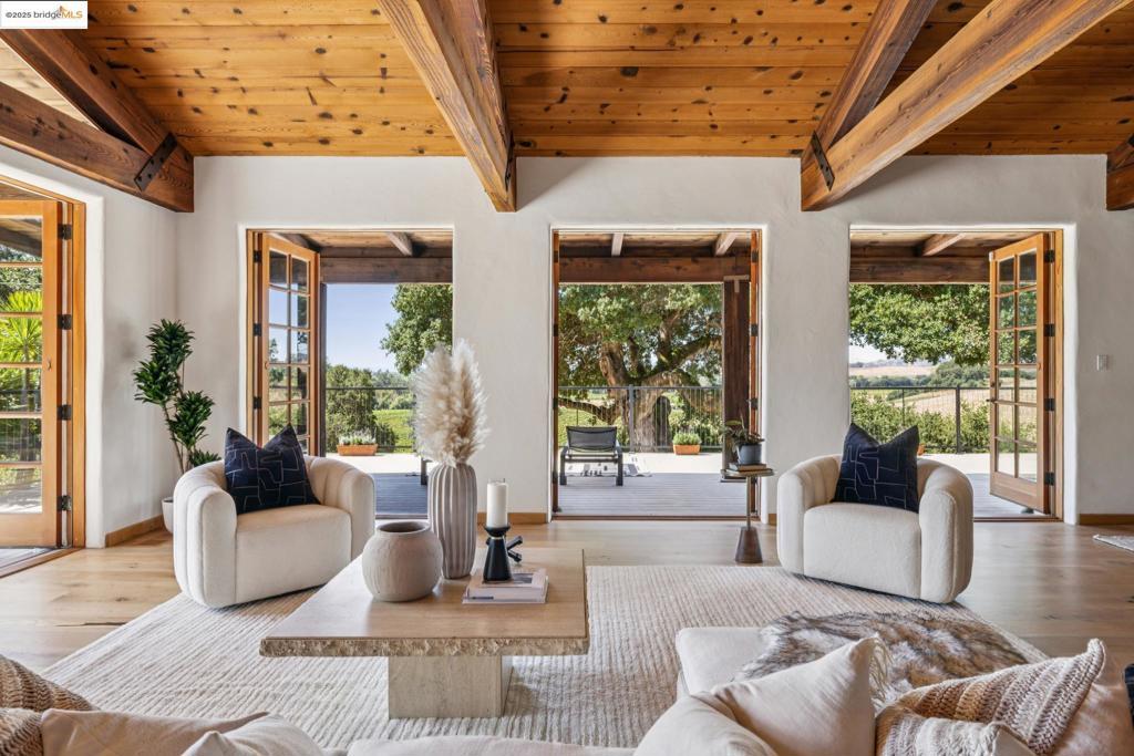 Santa Barbara–inspired design meets Napa Valley living in this 3,663 sq. ft. California Mediterranean ranch, set on 15.83 acres of privacy and beauty. The approach unfolds past a dreamscape of rolling vineyards and centuries-old oaks, revealing a residence where timeless design and relaxed elegance intertwine. Inside, dramatic redwood beams, soaring ceilings, and French doors in nearly every room create seamless indoor–outdoor flow to expansive courtyards, decks, and sweeping views. The main living room captures panoramic vistas, while a second gathering space and chef’s kitchen provide a natural hub for entertaining. Four bedrooms and three-and-a-half baths, including three private ensuites, offer comfort and retreat. Your own private drive through the 8.95-acre vineyard – protected under the Williamson Act – leads to a barn/workshop with a level area, adding both function and character. The grounds invite endless possibility – whether envisioned as gardens, a pool, or simply the quiet rhythm of vineyard life. Just minutes from downtown Napa, Carneros Resort, and the airport, with Sonoma and San Francisco beyond, bordering world famous Cakebread Vineyards. A rare offering where every sunset feels like a celebration of land and sky.