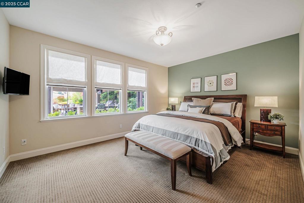 This breathtaking two-story estate offers 6 bedrooms, 6.5 baths, and resort-style luxury in one of Danville’s most coveted neighborhoods. Enter to soaring ceilings, abundant natural light, rich cherry hardwood floors, crown molding, built-in speakers, refined custom finishes and a full security system. To the left, an elegant formal living room with a white mantel and gas fireplace; to the right, a sophisticated den with custom cherry built-ins, ideal for a home office. The chef’s kitchen features a grand island, sumptuous cherry cabinetry, stainless steel appliances with a six-burner stove, and a butler’s pantry with wine fridge opening to an expansive dining room. The lavish primary suite showcases stunning Mt. Diablo views, a spa-like bath with soaking tub, dual vanities, walk-in shower, and a massive custom walk-in closet. Step outside to a private courtyard with fireplace and a fully equipped in-law suite with kitchen, bath, balcony, and separate entry. The entertainer’s backyard dazzles with panoramic Mt. Diablo views, a heated saltwater pool, spa, bocce court, garden beds, and a peaceful fountain. The outdoor kitchen is a chef’s dream with built-in grill, fireplace, warming drawers, fridge, dishwasher, and sink—perfect for luxurious outdoor living.