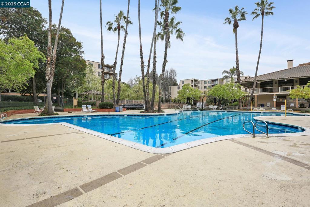Discover this beautifully maintained 2-Bdr, 1-bth condo with ~889 sq ft of smartly designed living space. Bedrooms are set on opposite sides for privacy, while the inviting living room opens to a balcony—ideal for morning coffee or evening relaxation. The kitchen features stainless steel appliances (Samsung fridge, Maytag range, LG microwave, Whirlpool dishwasher), ample storage, and a cozy dining nook. The primary suite includes a custom closet with mirrored doors and built-in shelving. Additional highlights: laminate flooring, new dual-pane windows, Nest thermostat, plus assigned parking and storage. Set on the quieter side of the community, the home overlooks greenery and tennis courts. Residents enjoy Walnut Creek’s most extensive amenities: secure entry, 3 pools, 3 hot tubs, 4 lighted tennis courts, racquetball and basketball courts, a 5,000 sq ft clubhouse (with ping pong, pool, library, TV room, sauna, steam, fireplace, gym, locker rooms), manicured grounds with pond, fountains, rose garden, keyed Iron Horse Trail access, and multi-car wash area. With close proximity to Hwy 680, BART, and Walnut Creek’s vibrant downtown, this home checks every box. Your new chapter starts here!