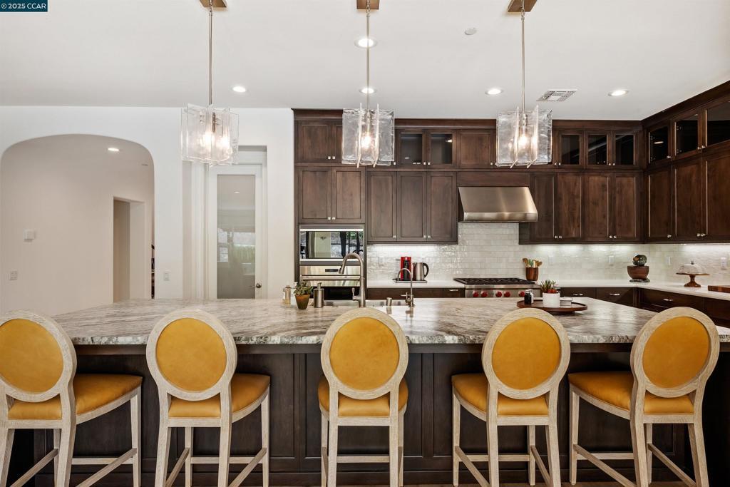 Ashbury at Alamo Creek w/$250K+ in custom upgrades borders open sp. Meticulously maintained by original owner in Danville’s master-planned community adjacent to 275+/-acres of open sp. Walk to trails, comm ctr, pool, fitness ctr, playgrd. Near top-rated SRVUSD schls. 4825+/-SF. Open concept flrpln. 5 bds, 5.5 bths inclds main-level bdrm suite, study, loft. Marble tile entry. Hardwd & carpet. High ceilings. Recessed lights. Plantation shutters. Multiple custom built-ins. Chef’s kitchen. Leathered granite slab island/brkfst bar. Quartz counters. Subway tile bksplsh. To-ceiling cabinetry. SubZero, Wolf & KitchenAid appls, Walk-in pantry. Stainless apron sink. Living rm w/gas frpl. Dining w/custom buffet. 16-ft glass accordion dr opens to professionally designed bkyd sanctuary. Covered California rm, pergola, fountain, garden bds, landscape lighting. Luxurious primary suite w/pvt view balcony. En suite w/marble tile flr, freestanding tub, dual vanities, oversized shwr, automated blinds, dual walk-in closets w/custom California Closets org.3-car tandem garage.Owned solar.Custom storage cabinetry.Samsung frnt-loading w/d. Ring doorbell. Sec alarm.New instant hot water heater.Mudrm/drop zone.Travertine tile entry/porch.Near Blackhawk Plaza,dwntwn,freeways, Livermore Valley Wine Country.