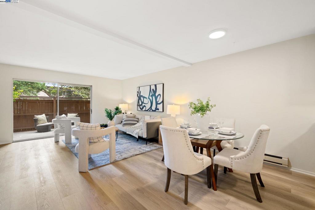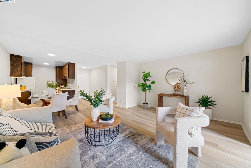 Welcome home to this light and bright bottom-level corner unit in a prime Alameda setting! This 2-bedroom, 1-bath condo offers 843 sq ft of thoughtfully refreshed living space and the rare benefit of no neighbors on two sides, providing added privacy not found in most units. New laminate flooring flows throughout, unifying the sunny living and dining areas. The open layout offers an easy transition from the living room to both naturally lit bedrooms and a stylish, functional full bath. Step outside to your private patio, perfect for morning coffee or evening relaxation. Located within a secure, gated community, the property features landscaped grounds and a warm, welcoming atmosphere. Just around the corner, Crab Cove Park and State Beach offer sandy shoreline, scenic trails, and beautiful Bay views. You’ll also appreciate the close proximity to Webster Street’s shops and dining, nearby parks, and convenient transit options. With its unbeatable location, enhanced privacy, and move-in-ready appeal, this Alameda condo is the perfect blend of comfort, convenience, and island living.