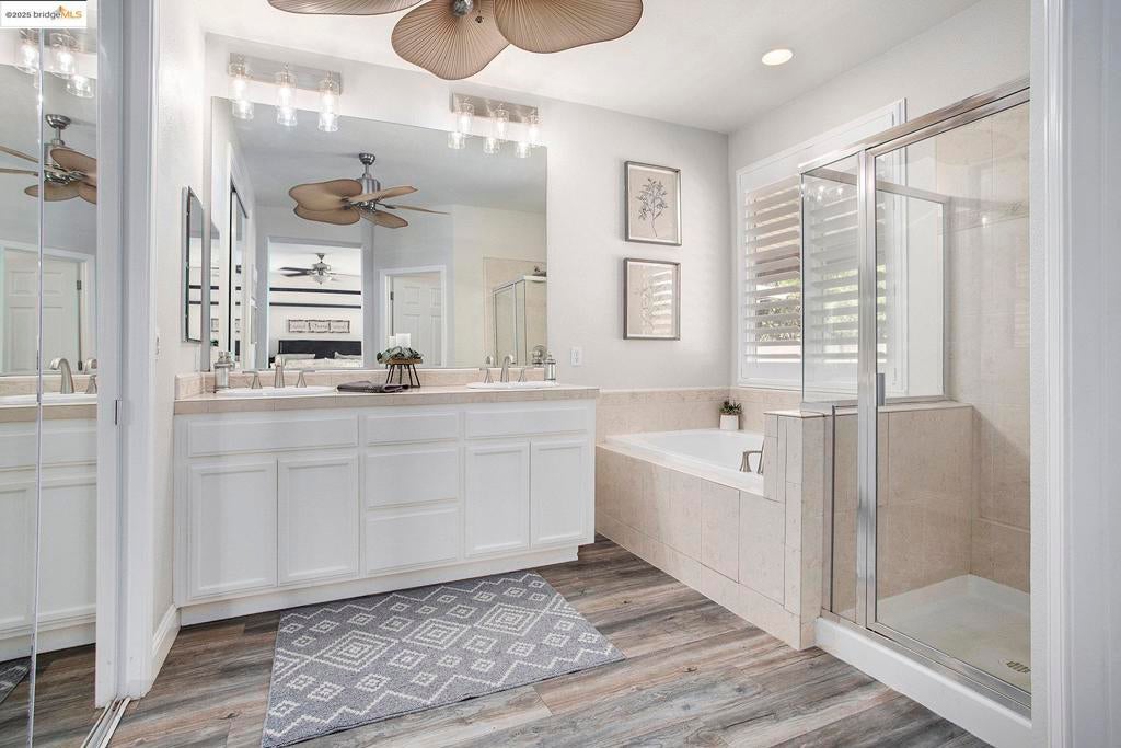 Back From The Holidays! Start the New Year in a home you'll love. This beautifully maintained single-level ranch-style home is a rare find in Canterfield, one of Vacaville’s most sought-after neighborhoods. Tucked away on a premium cul-de-sac lot, it features a covered front porch, abundant natural light, and side yard access with a large wood shed—perfect for an RV, boat, or toys. The spacious .25-acre lot offers exciting potential for an ADU, pool, or custom outdoor retreat. Inside, enjoy an open-concept floor plan with smart separation of dining and living spaces, highlighted by laminate wood-style flooring, plantation shutters, 5½ in. baseboards, and a gas fireplace. The kitchen has ample cabinetry, stainless steel appliances, a double oven, a 5-burner gas cooktop, an island with a sink, and a breakfast bar. The primary suite offers backyard access, a walk-in closet, dual vanity, a walk-in shower, and a soaking tub. A front bedroom with an en-suite bath is perfect for guests or in-laws. Energy-efficient upgrades include owned solar, new electric HVAC, a whole-house fan, and ceiling fans. Conveniently close to Vacaville Premium Outlets, Nut Tree Plaza, parks, hospitals, golf, and family attractions. A turn-key home with endless possibilities!
