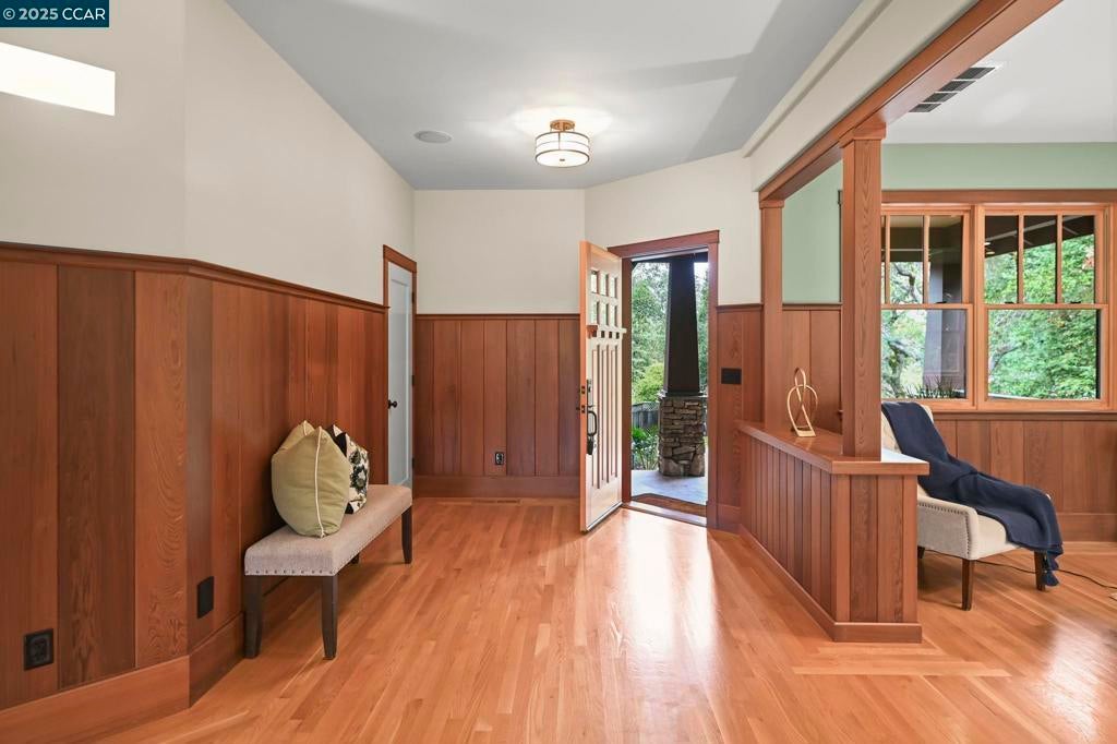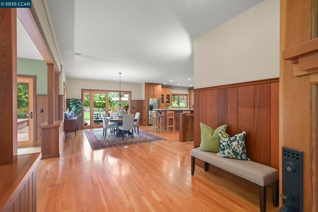 2 HOMES/10 CAR GARAGE. Welcome to this stunning country estate, nestled on 1.29 acres in the serene Tice Valley area of Walnut Creek. This enchanting property is just minutes from downtown. The main house, a true gem, boasts exquisite old-growth redwood finishes repurposed from the original Castle Hill Ranch House, which has not been on the market for 39 years. The flexible floor plan is perfect for multi-generational living or entertaining. The heart of the home exudes warmth and character with its craftsman details, providing an inviting atmosphere for family gatherings. In addition, the estate includes a cottage featuring 2 bedrooms and 1 bath, complete with central heating and air conditioning, as well as in-unit laundry facilities. This charming cottage offers both comfort and independence, ideal for guests or extended family. For those with a passion for projects or need extra space, a spacious garage/shop area spans 2,030 sq ft, featuring 14' ceilings and a 12' tall door making it perfect for hobbies or extra storage. The property is service with 400 amps and 2 PG&E meters plus a non-potable water well. Embrace the tranquility of country living while being conveniently close to urban amenities.
