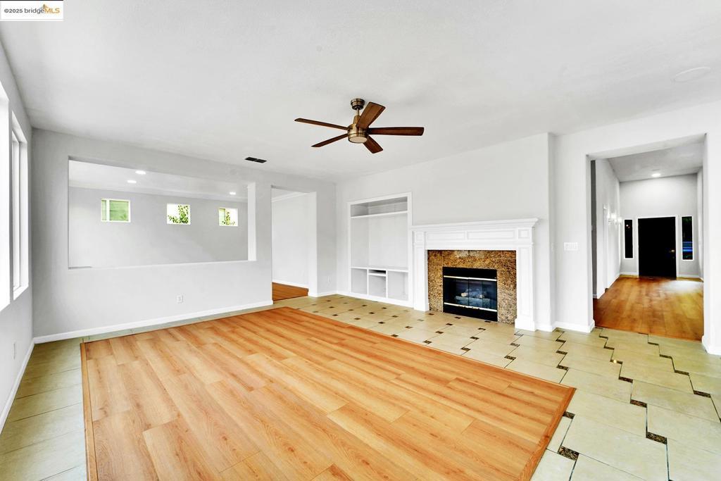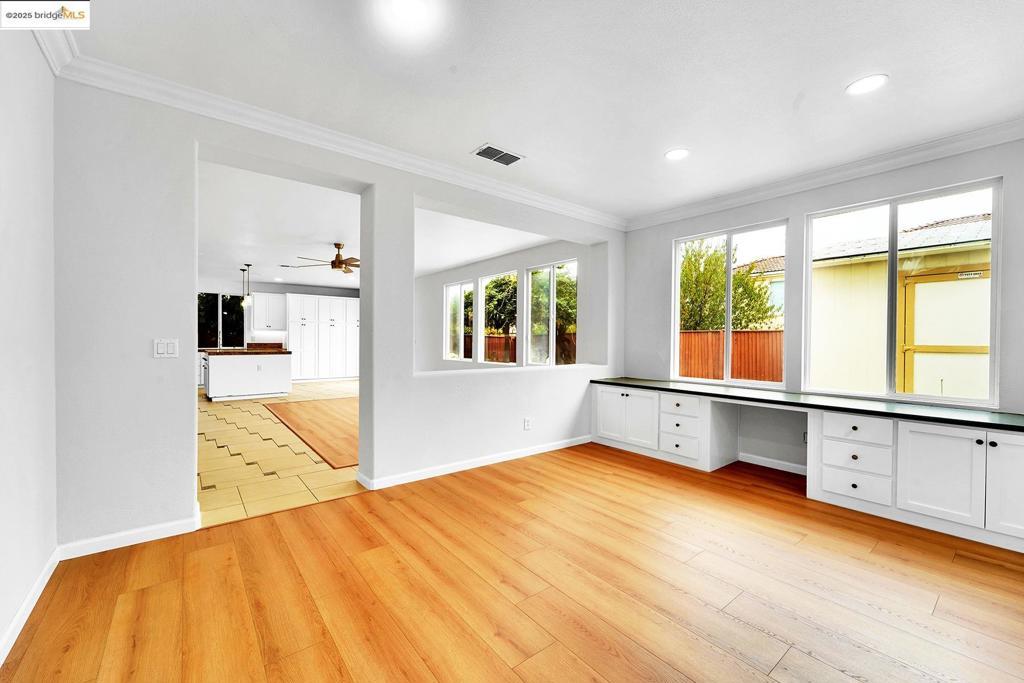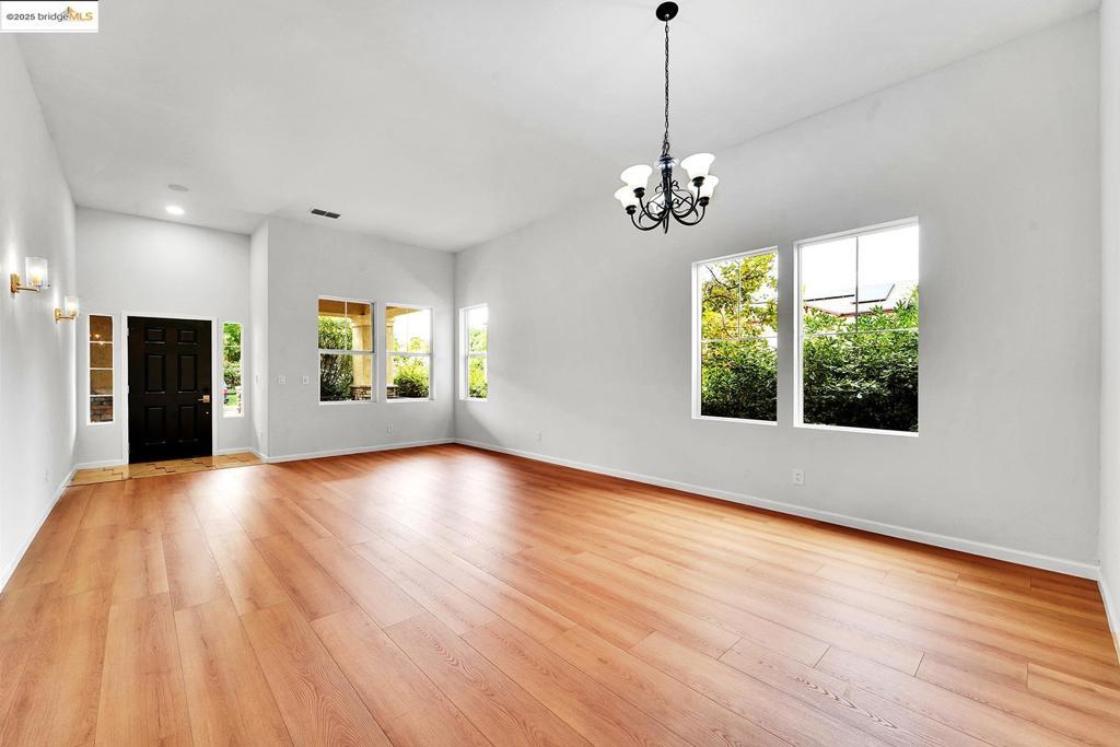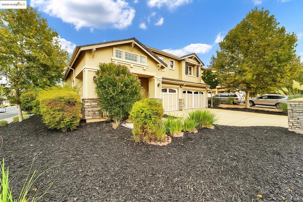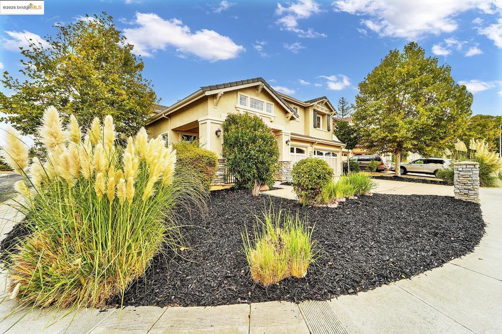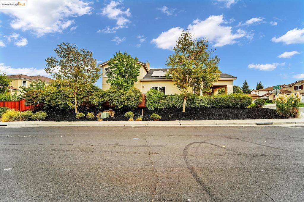 Grand 5 bedroom/4 bath contemporary on a premium corner lot with solar panels! Inviting tiled and covered entryway that leads to an open layout with high, airy ceilings and updates galore. Fresh interior paint and new waterproof laminate floors throughout. Chef's kitchen with massive island complete with all new stainless steel appliances and sink. One bedroom and full bath found downstairs, perfect for guest quarters or multigenerational living. Additional family room found upstairs and master suite with fireplace, office/nursery nook, and tiled en-suite with spacious walk-in closet. 3-car garage with driveway parking and the perk of having more sidewalk curb on your corner making accommodating guests and gatherings a breeze. Interior access from the garage leads to a convenient little mud-room space to kick off your shoes and wash your hands before coming inside. Brand new A/C unit! Manageable backyard with a bench covered awning and handy storage shed. Located near parks, golfing, restaurants, and shopping. Easy access to HWY-4 and Bart.