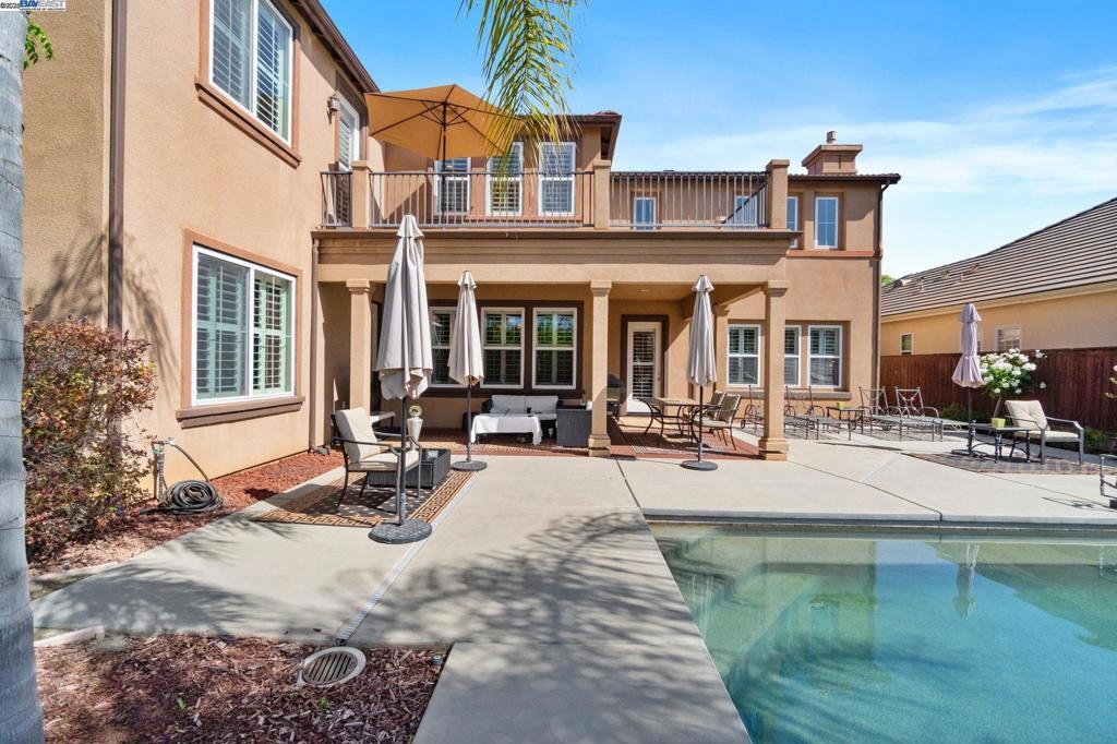 ON THE WATER! Welcome to this stunning 4 bed, 4 bath, 3-car garage “Montego” floorplan with over 3,800 sq.ft., perfectly set in the premier 57-acre, gated Quail Lake community. Designed for legacy living, this home rests on a 10k sq.ft. lakefront lot offering timeless craftsmanship & unmatched amenities. Enter through the private courtyard and be greeted by soaring 14-ft ceilings, abundant windows & elegant formal spaces including a parlor with fireplace, dining room with built-ins & a gourmet kitchen with massive granite island, cherry cabinets, butler’s pantry, SS appliances & 6-burner cooktop—all opening to the family room with spectacular lake views. The main level features a private guest wing with bed and full bath, plus a spacious laundry. Upstairs, the expansive master retreat awaits with sitting area, spa-style bath & a private balcony with breathtaking views. Additional ensuite & guest bedrooms offer comfort and privacy for the whole family. Step outside to an entertainer’s paradise: sparkling LED-lit pool with waterfall, custom hardscape, jumbo covered patio & your own boat dock. Plantation shutters add elegance throughout. Enjoy Quail Lake’s lifestyle—clubhouse, Olympic-size pool, trails, 24/7 security, and top-rated Charter School—all just steps away!