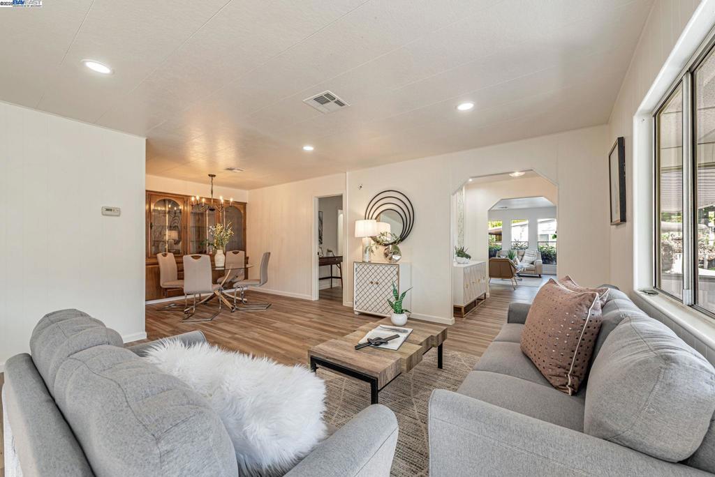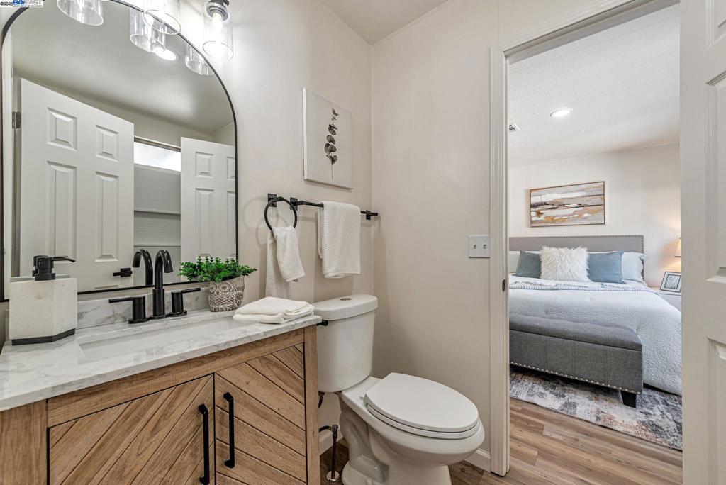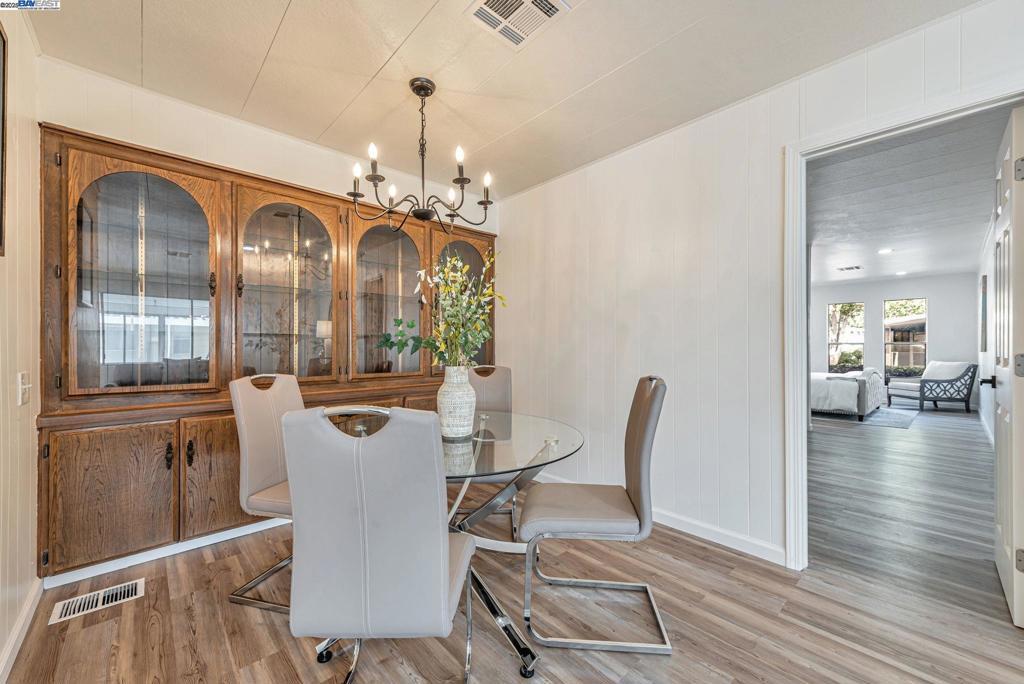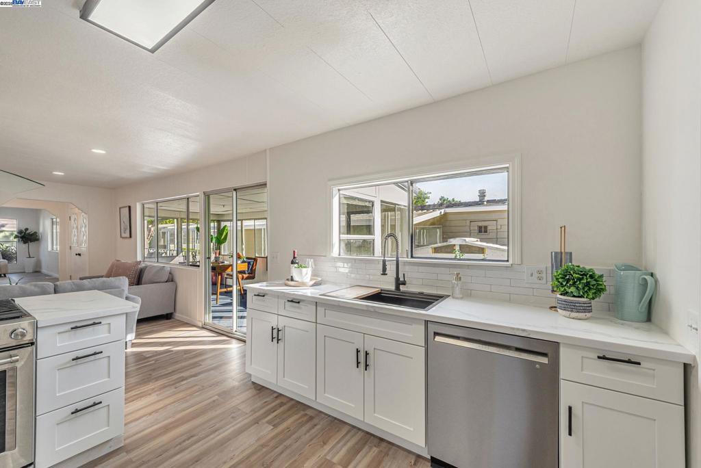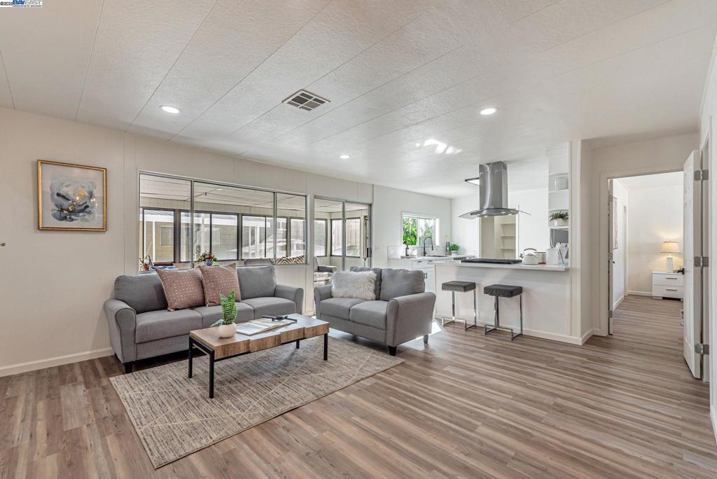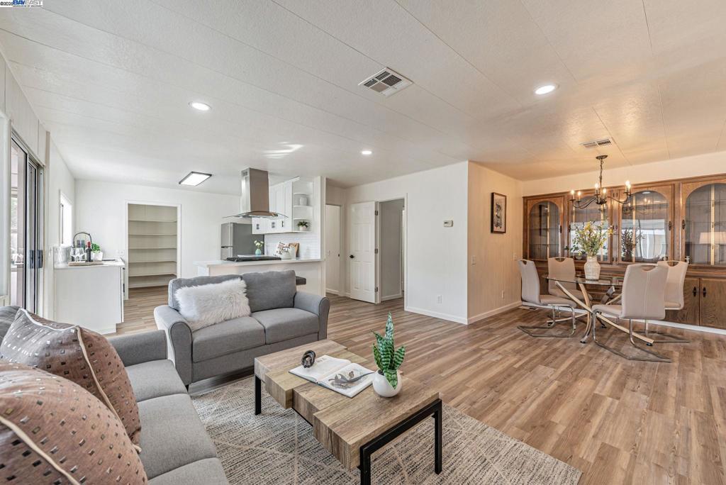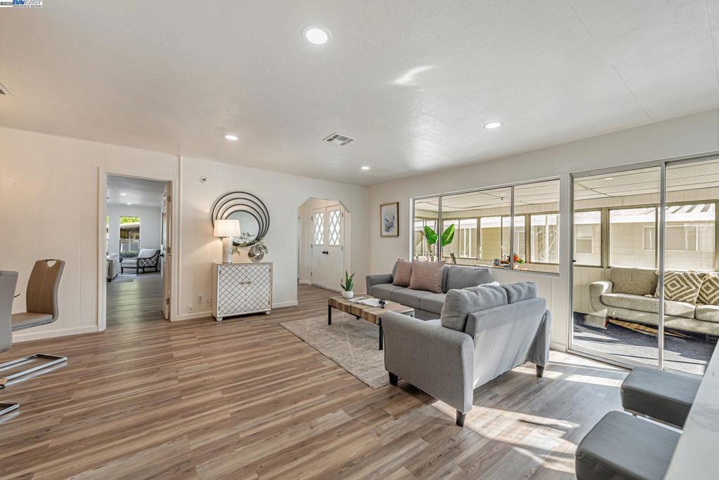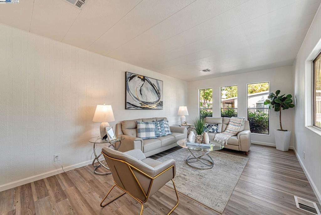 Sunnyvale Gem: Modern Living at Willow Ranch Welcome to Willow Ranch, a premier 55+ community in the heart of Sunnyvale. This stunning, fully renovated home offers modern luxury and convenience, feeling more like a chic single-family residence. Step inside the generous, open-concept floor plan, where every detail has been thoughtfully updated. The pristine modern aesthetic features sophisticated black light fixtures and hardware. The home is completely turn-key with new paint (in/out), new high-quality LVP flooring, and new carpet on exterior porches. A versatile enclosed porch off the living room offers highly desirable extra living space—perfect for a sunroom, office, or quiet retreat. The gourmet kitchen boasts all-new cabinetry, white quartz countertops, and a peninsula island. Stainless steel appliances are included, a large walk-in pantry. Great display and storage space is provided by a built-in glass-fronted cabinet in the dining area. The spacious primary suite features a walk-in closet and a spa-like ensuite bath with dual sinks and gorgeous vanity. Located conveniently near shopping, restaurants, freeways 101 & 237. The established community provides an active, social lifestyle with amenities: clubhouse, pool, and spa. Don't miss this stylish, fully updated home! Fireplaces: NO
