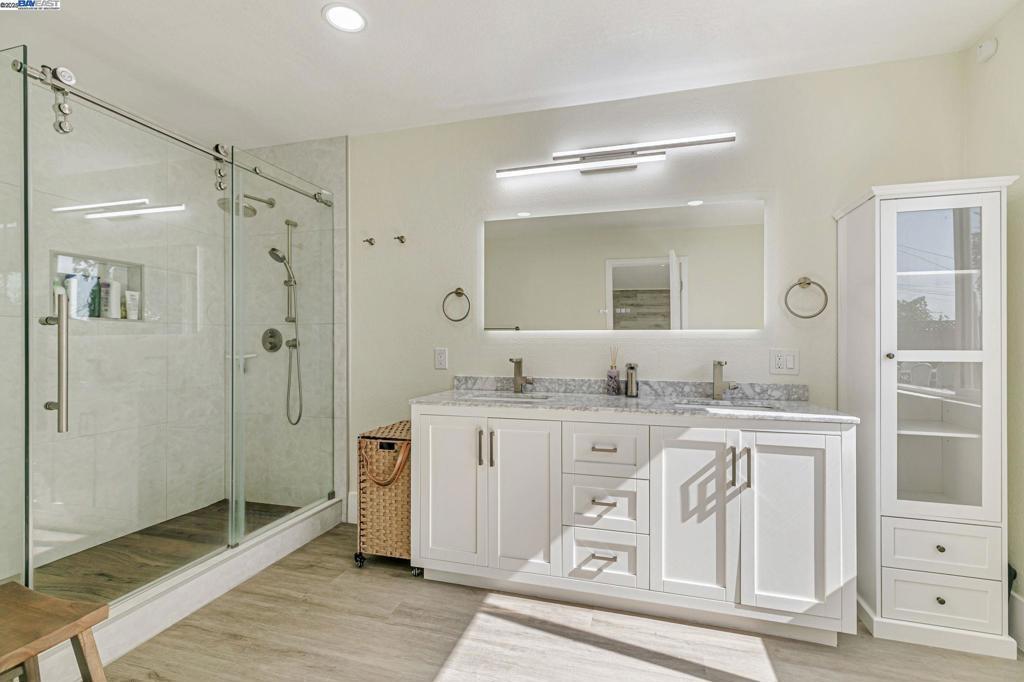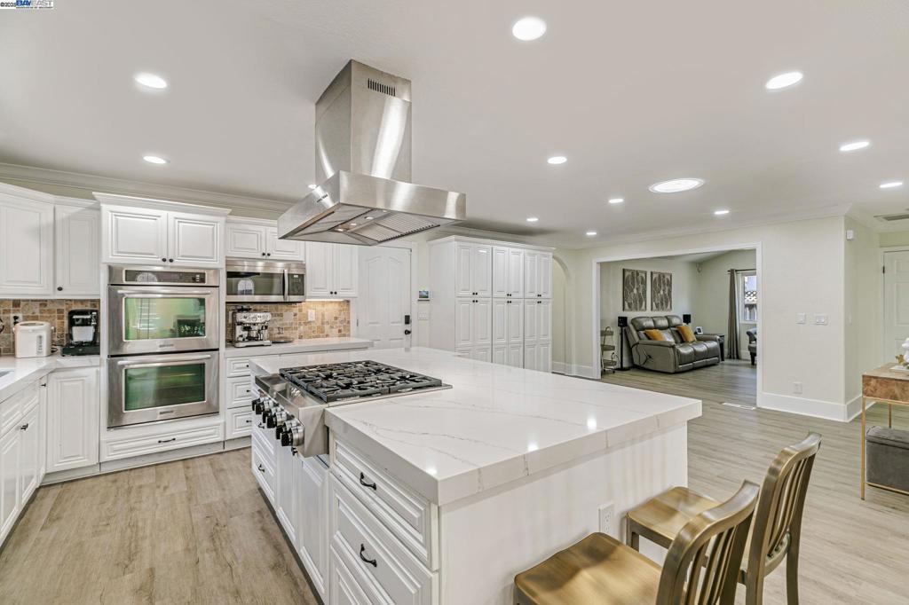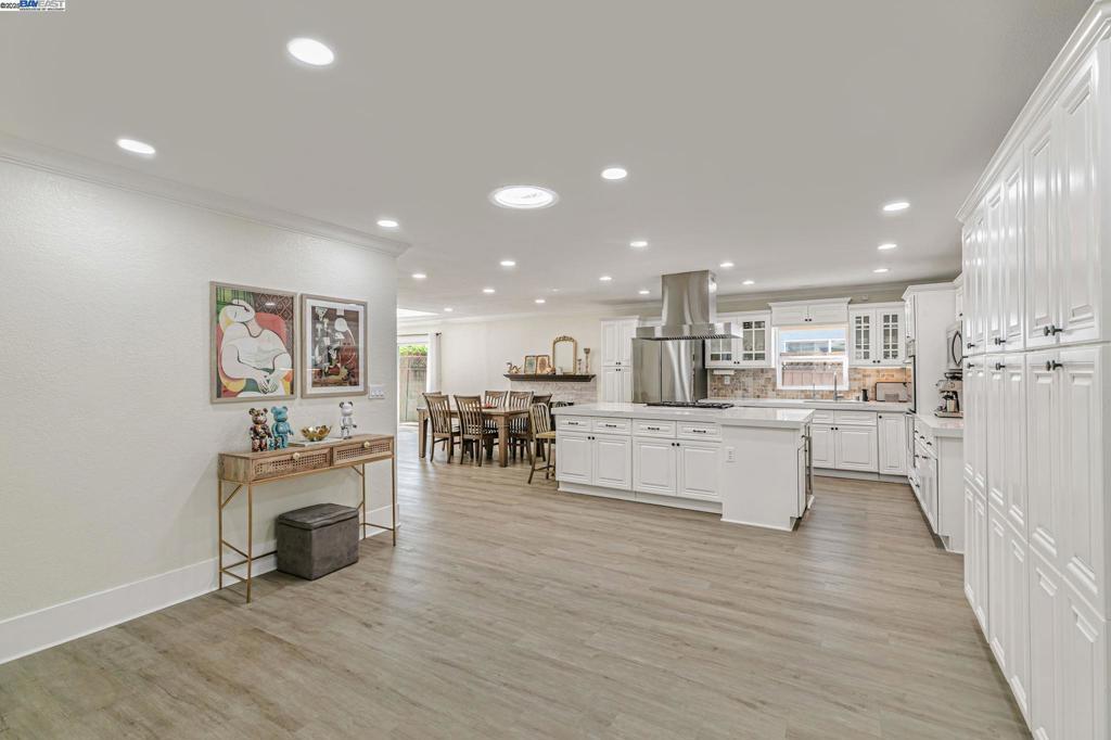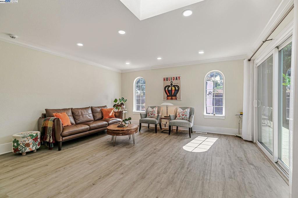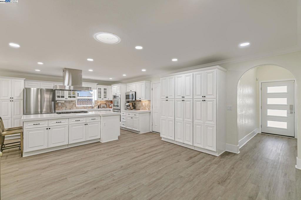 Welcome to this stunning 4 bedrooms 2 full bathrooms home located in the desirable Sundale neighborhood of Fremont. Thoughtfully designed with comfort and modern living in mind, this home boasts a spacious open floor plan, perfect for everyday living and entertaining. The formal living room boasts vaulted ceiling. The separate family room with a sliding glass door and a custom skylight is open to the elegant dining area with a charming fireplace. The remodeled chef’s kitchen features ample cabinet space, an oversized island, quartz countertops, and stainless-steel appliances including KitchenAid commercial gas cooktop, wine refrigerator, refrigerator, dishwasher, and double oven. Relax in the remodeled primary suite with vaulted ceiling, an accent wall, and a sliding glass door to the backyard patio. Spectacular en-suite bathroom with free-standing tub, large shower with clear glass enclosure, and dual vanity with designer mirror & light. Hall bathrooms is also tastefully updated. Additional features include recessed lighting throughout, elegant crown molding, 6-panel interior doors, and laminate flooring. Low maintenance backyard with large patio for outdoor entertaining. convenient access to top-rated schools, parks, shopping, and commuter routes.