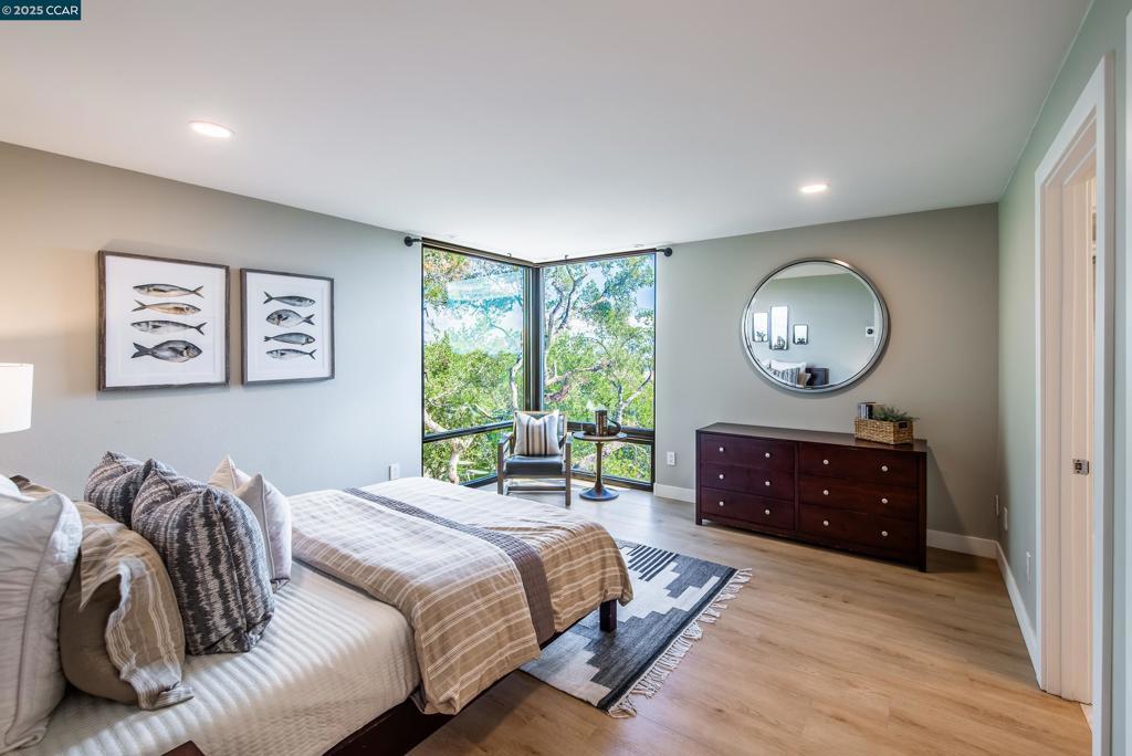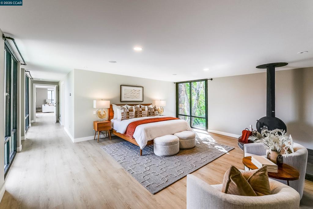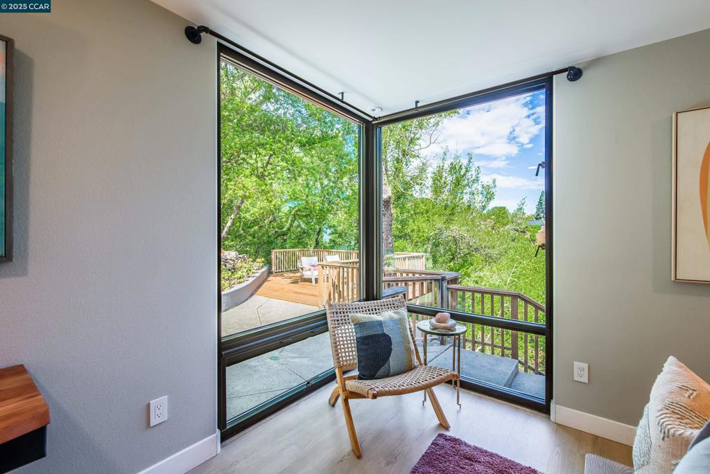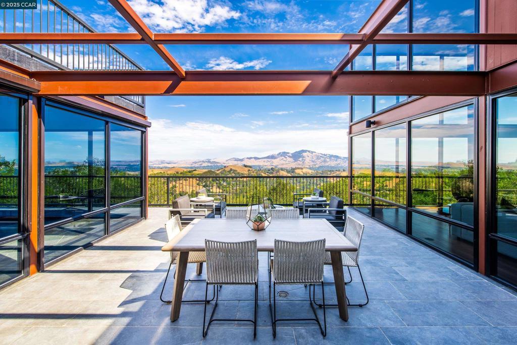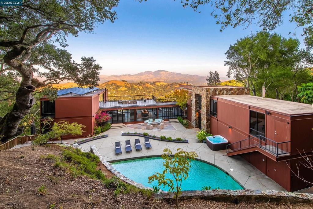 Unique mid-century modern retreat with sweeping Mt. Diablo views, walls of glass, and expansive decks for seamless indoor-outdoor living. The dramatic living room features floor-to-ceiling windows on three sides and a floating fireplace, while the dining room and chef’s kitchen also capture stunning views and open to the pool and patio. The bedroom wing includes four ensuite bedrooms all with corner windows and walk in closets. The primary retreat enjoys a loft with relaxing views, a dressing room, spa-inspired bath, and direct access to the pool, spa, and sauna. The lower level includes an office/guest suite, art studio, and gym with full baths, creating flexible spaces ideal for work, creativity, and wellness. Designed for both grand entertaining and quiet relaxation, this architectural gem sits on a gated, private lot surrounded by nature with multiple view decks, mature landscaping, and raised garden beds. Enjoy resort-style amenities year-round with pool parties, sunset dinners, and morning yoga on the deck...all just minutes from vibrant downtown Lafayette, Walnut Creek, BART, and top-rated Lafayette schools!
