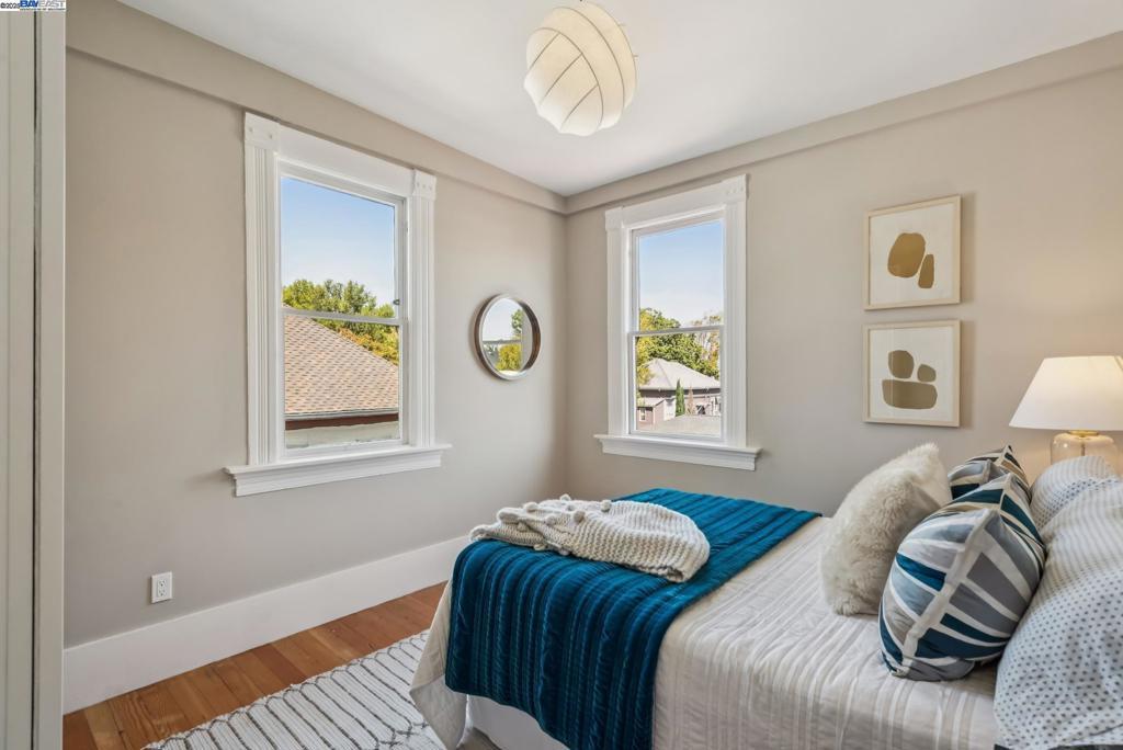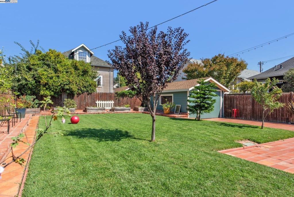 Enjoy the beauty of this majestic 4-bedroom, Alameda Queen Anne in a park-like setting. This fresh, 3000 sq. ft. light-filled home, sits on a large 7,500 sq. ft. lot and has a valuable 3-bedroom and 1-bath attached unit with a private courtyard entrance. Surrounded by lush lawns and classic terra cotta tile, it has 5 off street parking spaces and a long driveway to the rear garage with space for RV parking and an accessible full-bath The main home retains many original features with impressive soaring ceilings, pocket doors, gingerbread, and more. It features a welcoming formal entry and living room, a sought-after family room, a dining room off the kitchen, and a convenient half-bath. The modern kitchen echoes the architecture of the original home and is designed to be multi-purpose. It is equipped with five workstations, a walk-in pantry, and a laundry room. Amenities include a 6-burner Thermador gas cooktop with a pot filler, built-in oven, dishwasher, large capacity refrigerator, and a center island with an under-counter refrigerator. Picture windows offer an expansive view of the backyard. The second floor boasts 4 bedrooms and a delightful bathroom with a walk-in shower and a claw foot soaking tub. Additionally, there is approx. 660 sq. ft. of useful attic space.