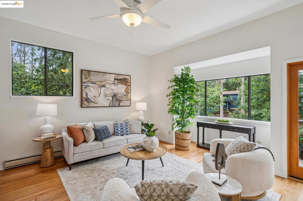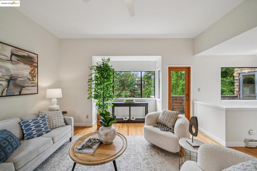 This peaceful North Berkeley Hills retreat offers light-filled living with freshly refinished hardwood floors, tall ceilings, and green views from almost every window. Step inside to find a welcoming living room, a bright dining area, a kitchen complete with pantry, and a handy half bath. Sip your morning coffee on the deck accessed through French doors. Down one level, all three bedrooms, including a primary suite with en-suite bath are thoughtfully located with laundry nearby. A dedicated office with both interior access and a separate entrance is on the third level providing privacy and flexibility for work or guests. Built in 1979 with modern systems and copper plumbing, the home combines reliability with comfort. Multiple decks, a sunny patio, and a secluded hot tub invite you to relax and enjoy the surrounding natural beauty. Just minutes from UC Berkeley, the Rose Garden, and neighborhood parks, as well as Berkeley’s shops and restaurants, this home offers the perfect balance of convenience and tranquil hillside living. Open Sat/Sun, 2-4 pm.