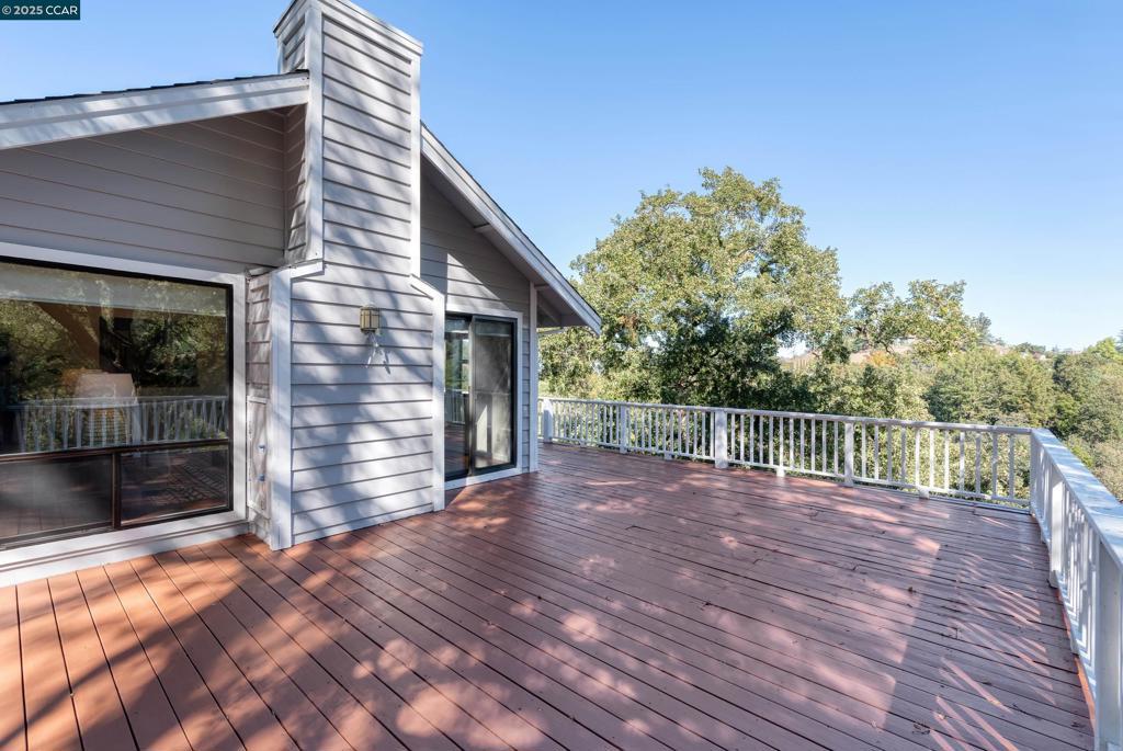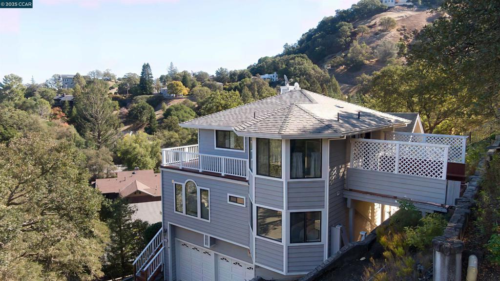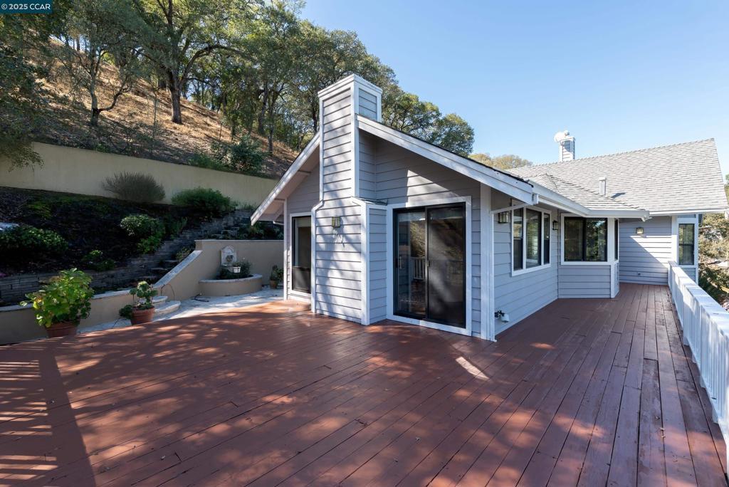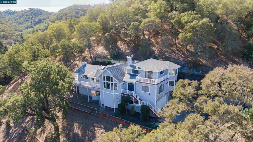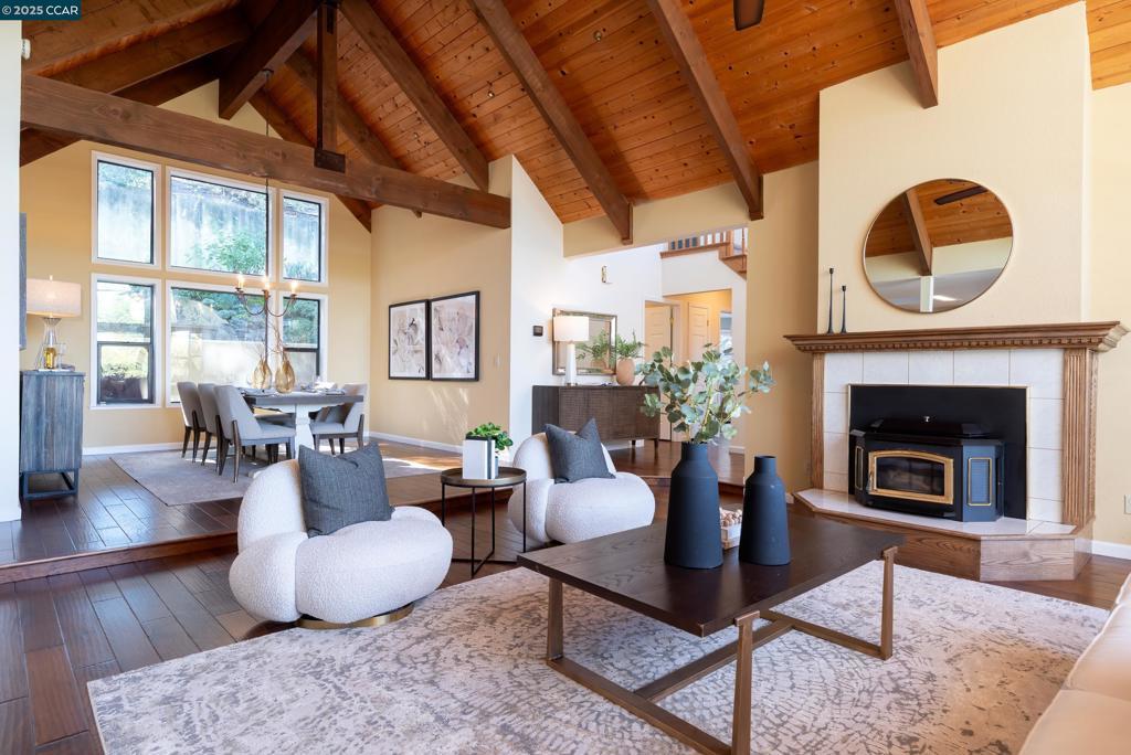Welcome to 59A Saddle Road nestled above the treeline in Walnut Creek’s Castle Hill neighborhood. This 5-bedroom 3.5-bath custom home offers nearly 3,200 sq ft of light-filled living with panoramic East Bay views and Tahoe cabin charm. The Great Room features soaring cathedral-style vaulted ceilings with exposed wood beams and oversized picture windows overlooking the trees. A second living room centers around a cozy pellet stove fireplace that brings warmth and ambiance to every season. The kitchen features stone counters, a large island, skylight and built-in appliances with access to a wraparound mezzanine deck that captures expansive valley views. A lower-level suite includes its own bath and laundry ideal for guests, in-laws or multi-gen living. The primary suite offers a private deck, a jetted tub and a walk-in closet. Multiple view decks and landscaped gardens complete this tranquil retreat minutes to downtown Alamo or Walnut Creek, top Acalanes schools and scenic hiking and biking trails. Make this house your home! Seller to offer buyer a rate buy down and or credit toward buyer’s closing costs, certain terms apply.