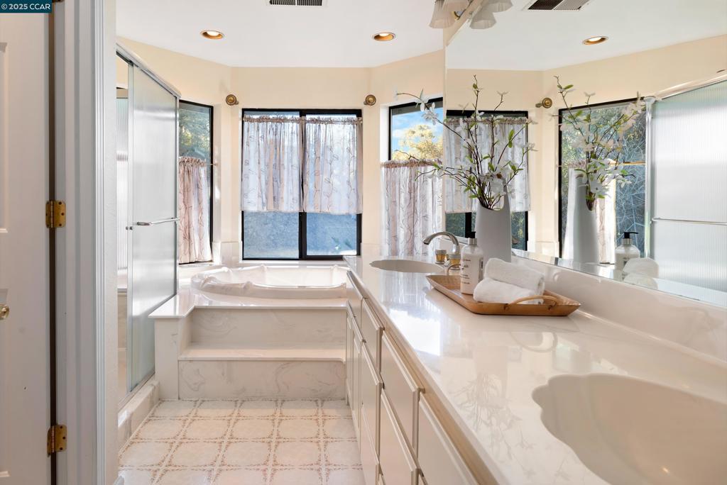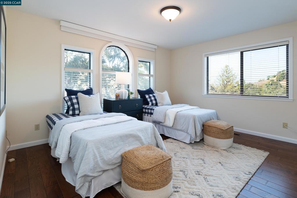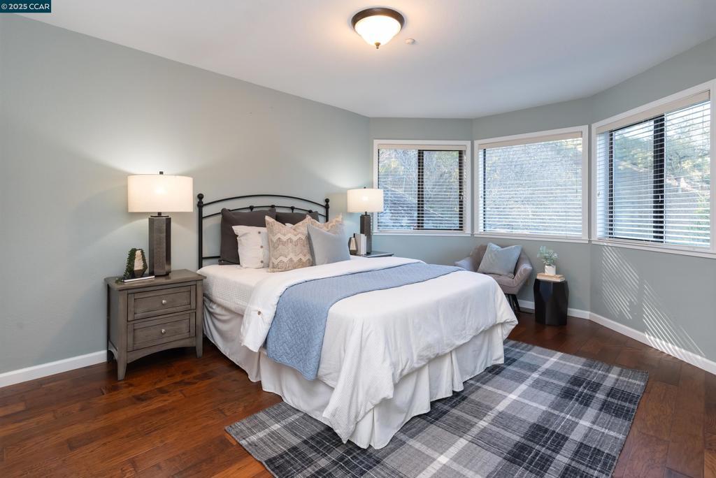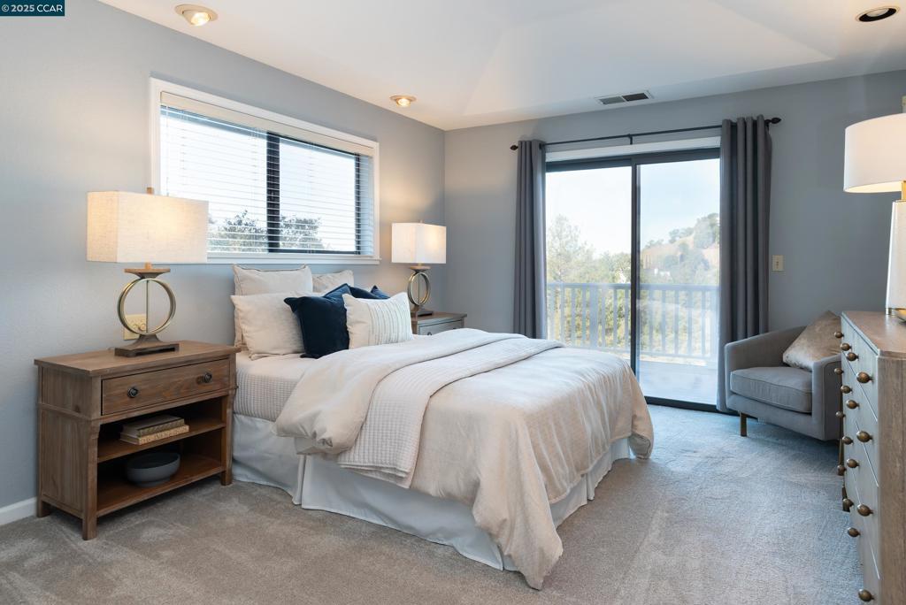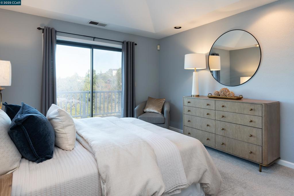 Welcome to 59A Saddle Road nestled above the treeline in Walnut Creek’s Castle Hill neighborhood. This 5-bedroom 3.5-bath custom home offers nearly 3,200 sq ft of light-filled living with panoramic East Bay views and Tahoe cabin charm. The Great Room features soaring cathedral-style vaulted ceilings with exposed wood beams and oversized picture windows overlooking the trees. A second living room centers around a cozy pellet stove fireplace that brings warmth and ambiance to every season. The kitchen features stone counters, a large island, skylight and built-in appliances with access to a wraparound mezzanine deck that captures expansive valley views. A lower-level suite includes its own bath and laundry ideal for guests, in-laws or multi-gen living. The primary suite offers a private deck, a jetted tub and a walk-in closet. Multiple view decks and landscaped gardens complete this tranquil retreat minutes to downtown Alamo or Walnut Creek, top Acalanes schools and scenic hiking and biking trails. Make this house your home! Seller to offer buyer a rate buy down and or credit toward buyer’s closing costs, certain terms apply.