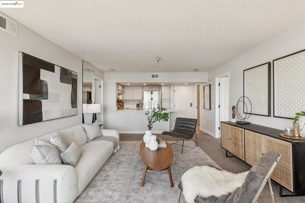 Wake up to morning light streaming through oversized windows, with the Golden Gate Bridge and Mount Tam greeting you in the distance. Evenings unfold over skyline views and dinner parties in the window-wrapped dining area—an effortless blend of cozy and cosmopolitan. The updated kitchen, complete with brand-new appliances and sleek countertops, flows seamlessly into bright, open spaces designed for connection and calm. A marble fireplace anchors the living area, and a smart, open layout makes everyday living feel effortless. Two spacious en-suite bedrooms offer a retreat, each with serene views and thoughtful privacy. A separate laundry room adds everyday convenience without compromising flow. This amenity-rich, gated community offers a pool, spa, gym, clubhouse, extra storage, and two deeded garage parking spaces. Just a few blocks to Pacific East Mall’s dining and shopping gems, 99 Ranch Market, El Cerrito Plaza, and more—you’re also minutes from Albany’s award-winning schools and enjoy quick access to BART, Transbay Bus, and I-80. HOA fee includes INTERNET, TV, WATER, GARBAGE and there are multiple Tesla chargers located just down the street.