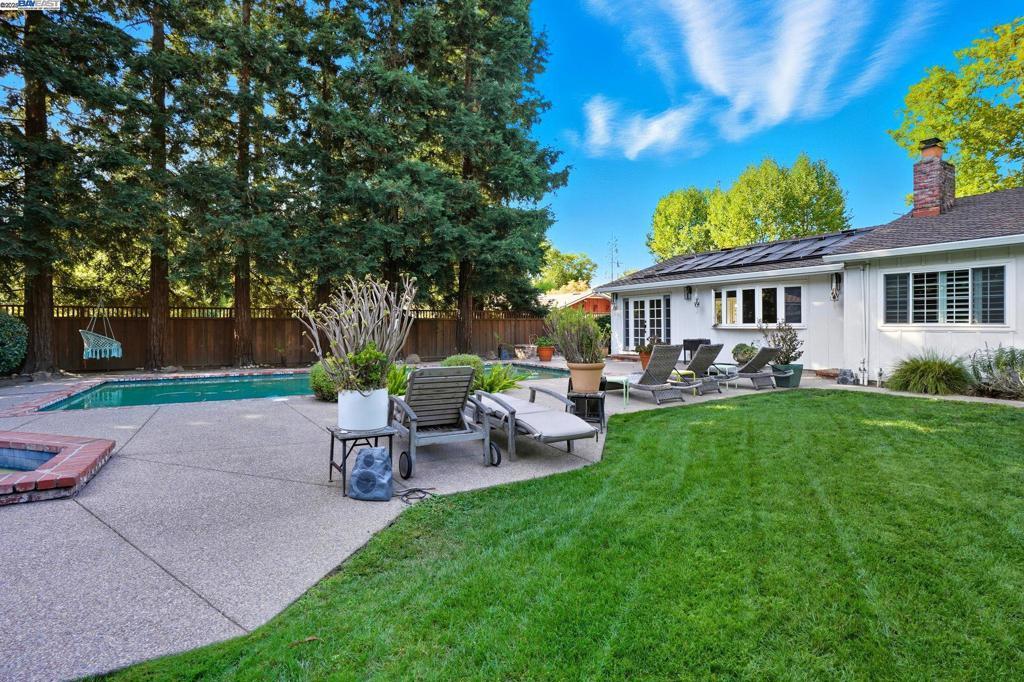 Prime court location walking distance to downtown Danville + Iron Horse Trail! Updated 4BR home on approx. 1/3-acre, park-like lot with pool. Hardwood floors throughout, bright social spaces, and recently renovated bathrooms. Large family room with gorgeous wood beams! Incredible outdoor pavilion features: outdoor shower, dedicated dog wash, half bath with sink, wine fridge, 2-head kegerator, and full surround-sound system—ideal for entertaining. Expansive yard offers multiple seating/dining zones and room to play. Sought-after neighborhood vibe with cul-de-sac privacy and close proximity to shops, dining, parks, and commuter routes. Award winning schools. A rare Danville lifestyle opportunity!