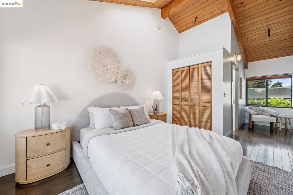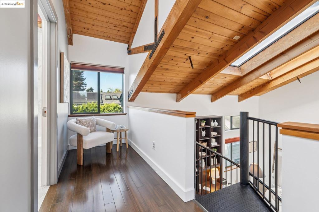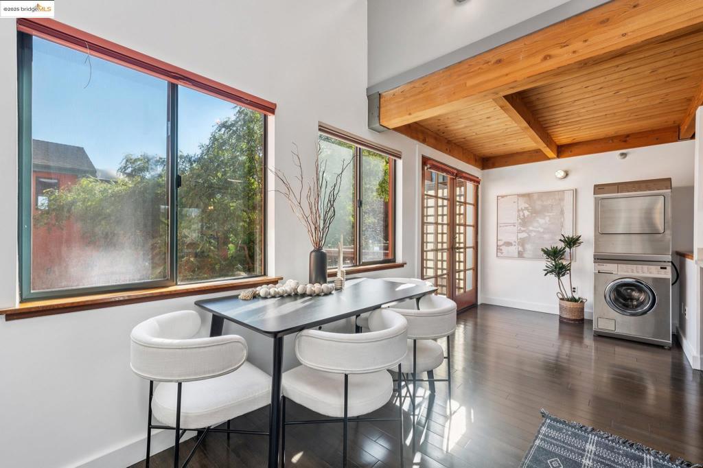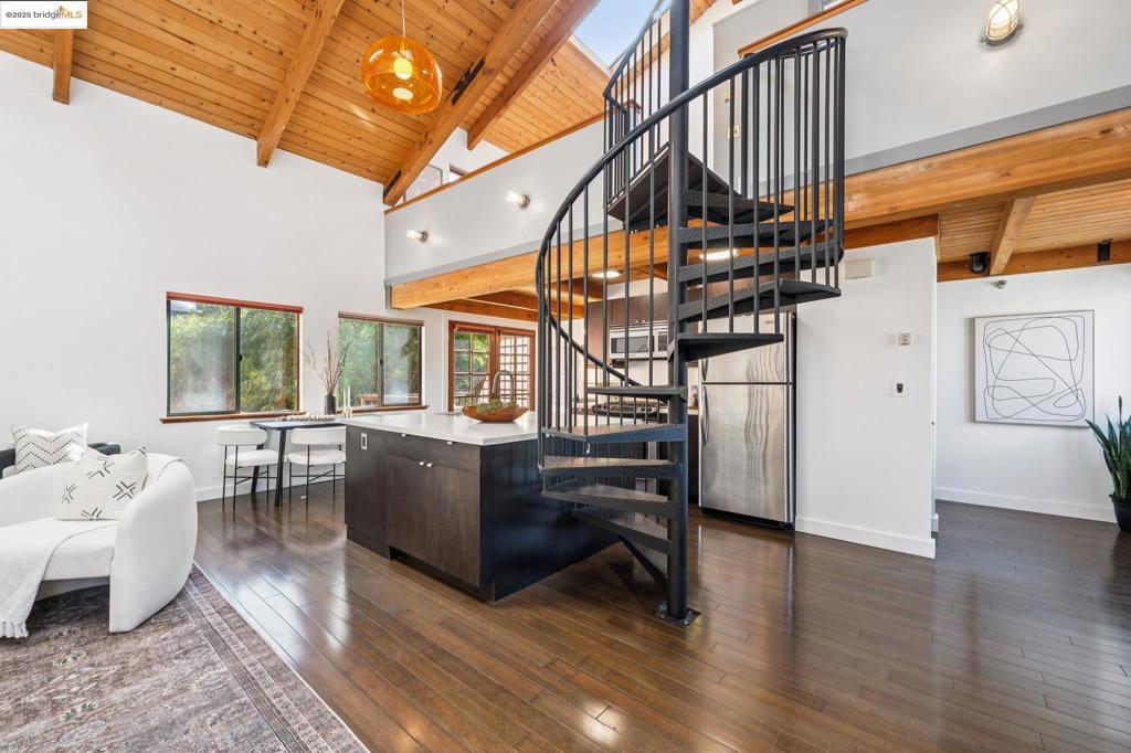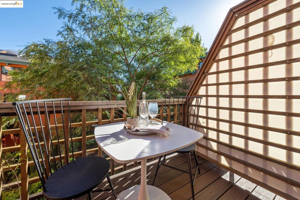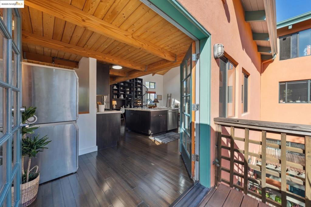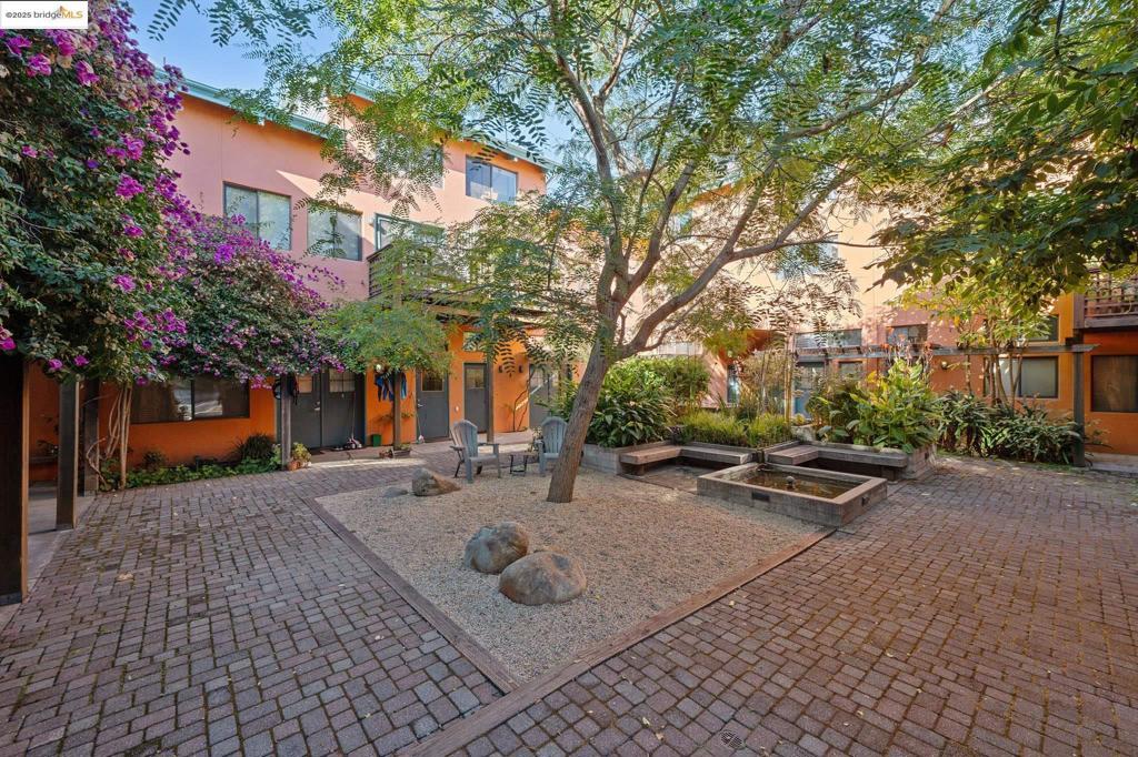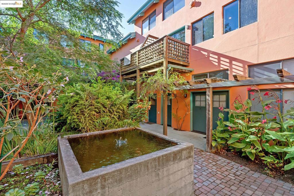 Welcome to Oceanview Lofts, a gated live/work community by Thomas Dolan. This luminous top-floor one-bedroom loft features double-height ceilings, oversized skylights, and expansive windows. Wood flooring and exposed beams lend warmth throughout. The open layout suits living and dining with ease, and the kitchen provides an island and ample storage. Dolan’s studio pioneered new-construction live/work in the United States and remains a recognized leader more than twenty years on. In-unit laundry is on the main level. The bedroom above offers a restful sense of privacy. A south-facing private deck looks over a serene courtyard with a tranquil fountain and lush greenery. One assigned garage space completes the offering. Enjoy world-class shopping and dining in the nearby Fourth Street shopping district. Close to Berkeley Bowl West, the Berkeley Amtrak station, and Aquatic Park, with easy access to I-80 and I-580 and public transit.