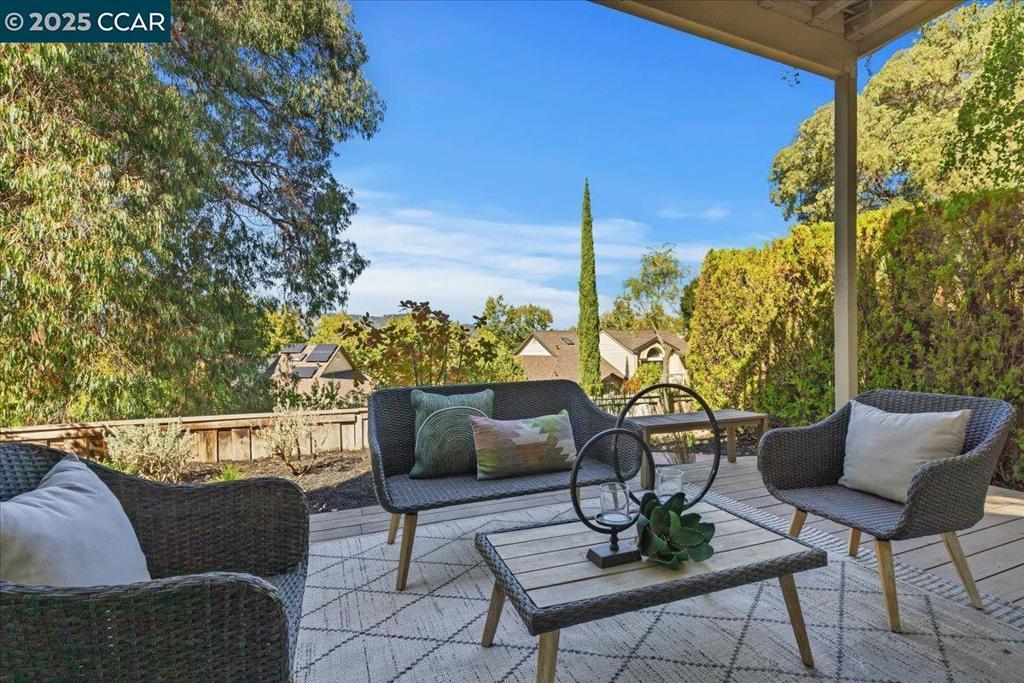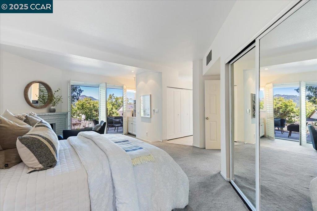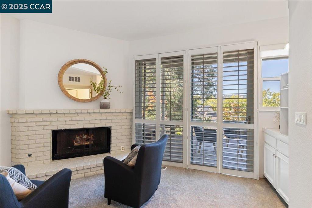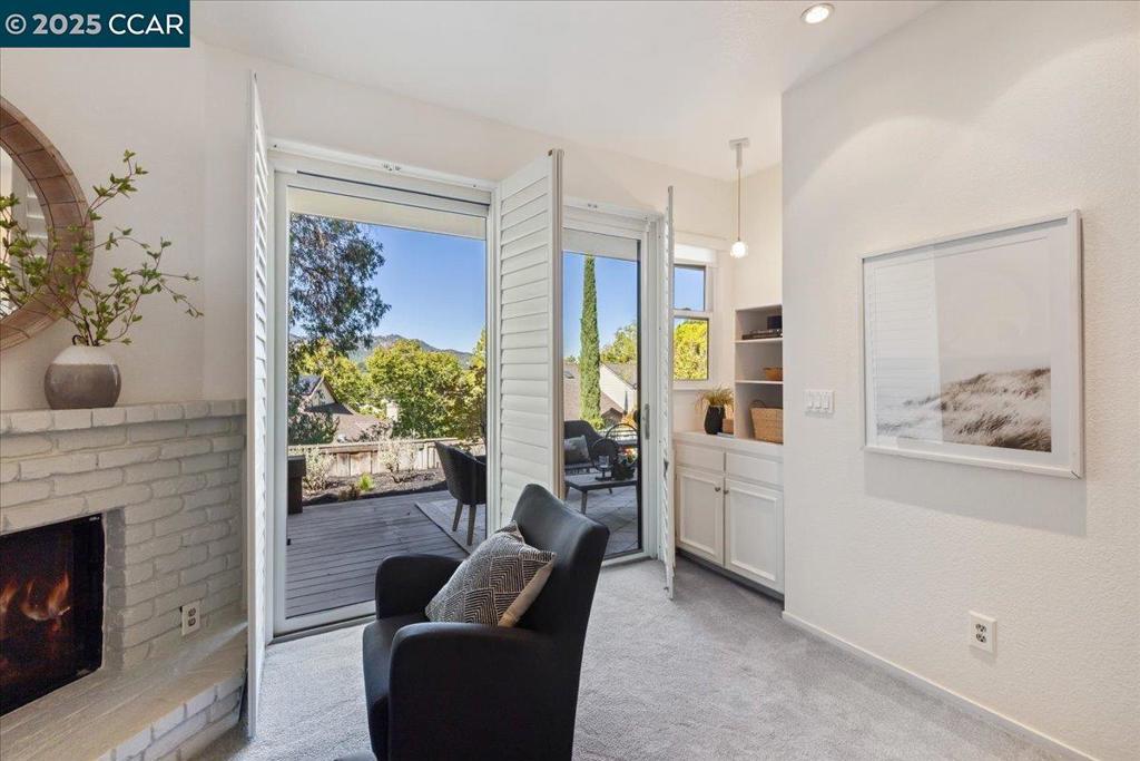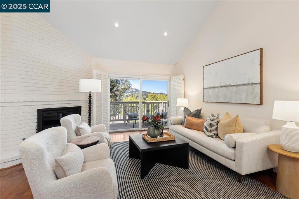 NEW PRICE!! Welcome to this beautifully appointed 2-bedroom + loft, 2-bathroom townhome nestled in the gated community of Beacon Ridge—a serene enclave tucked in the hills bordering Lafayette. Thoughtfully designed living space, offers comfort, style, and captivating views of the northern hills from the living room, second bedroom, and luxurious primary suite. Step inside to a dramatic living room and dining area with soaring ceilings, hardwood floors, recessed lighting and fireplace, all opening onto a balcony perfect for enjoying tranquil views. The remodeled eat-in kitchen boasts warm-toned cabinetry, hard surface countertops, stainless steel appliances, and a charming greenhouse window that invites natural light and garden views. Retreat to the spacious primary suite, a true sanctuary complete with its own fireplace, a sitting area, walk-in closet and sliding glass doors leading to a private deck and small garden area. Custom closet built-ins provide optimal organization and storage. Large front entry deck and attached two-car garage with workbench. Lafayette/Acalanes award-winning schools!