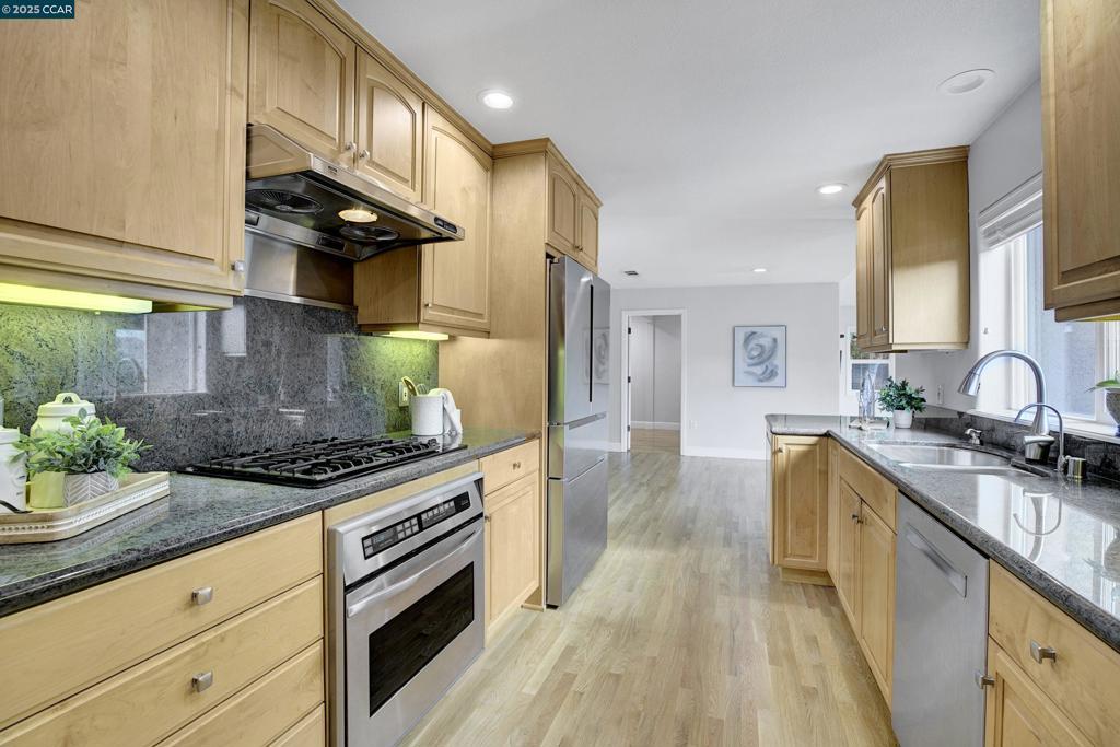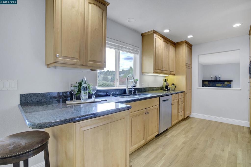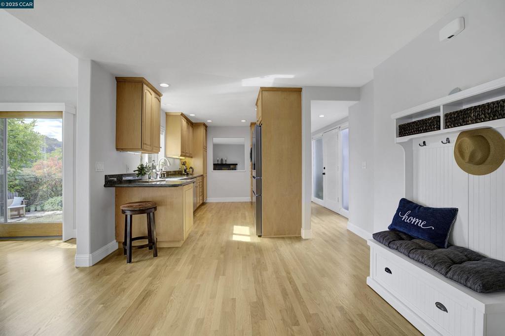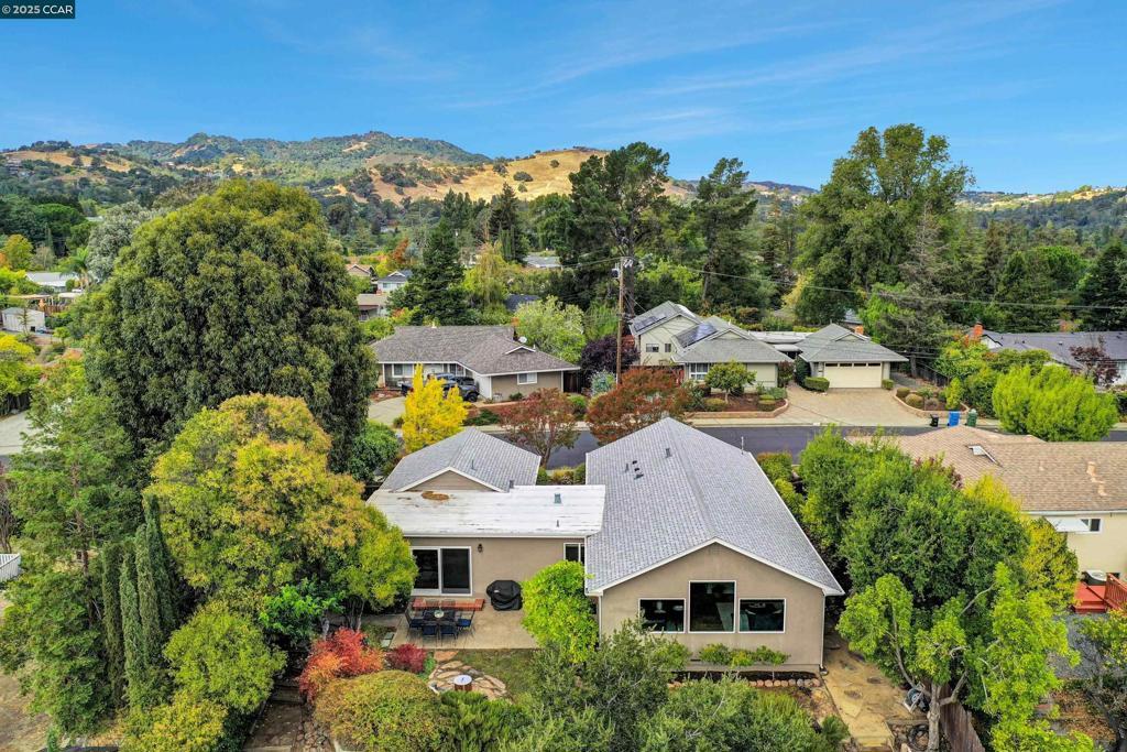 Tucked away in one of Walnut Creek’s most sought-after neighborhoods on a friendly and inviting street, this single-level ranch charmer blends modern comfort with timeless style. Just steps from the local trail system, Larkey Park, and only five minutes from downtown Walnut Creek, this home offers a rare combination of privacy, convenience, plus unobstructed views of Mt. Diablo and rolling green hillsides. The inviting floor plan features a spacious family room with vaulted ceilings, dramatic picture windows, and abundant natural light that captures the incredible scenery. The extra-wide galley kitchen includes a gas range, breakfast bar, and connects seamlessly to the bonus flex room ideal for an office, den, or formal dining space, complete with a pass-through window for added convenience. Enjoy LED lighting & hardwood flooring throughout, durable, stylish, and easy to maintain. Both bathrooms are modernized with fresh, updated finishes, and all three bedrooms offer great light and comfort. Set on a large, private lot with low-maintenance landscaping, this home invites you to relax outdoors to soak in the serene views. Additional highlights include a new energy-efficient roof (2023) and thoughtful updates throughout. Don’t miss this darling Palos Verdes gem — priced to sell!