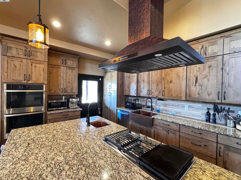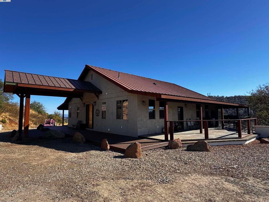 Panoramic Views, Privacy, And Convenience Only 1.5 hours from Yosemite! Welcome to 2280 Roan, a stunning 3-bedroom + office (optional 4th), 3-full bath home with two owner suites and 2,832 sq ft of beautifully designed living space. Offering 20 acres + a seasonal creek on end of road privacy, this retreat showcases sweeping mountain and lake vistas on a wraparound porch. Only 1.5 hours from Yosemite, about an hour from Bear Valley Skiing, 30 min from Murphys and 15 min from downtown Angels Camp, the home is designed to be fire resistant with concrete walls, fire-resistant floors and a copper roof. Inside, find a gourmet kitchen with stainless steel appliances, copper sinks, copper hood, monster island and granite countertops perfect for luxury entertaining. A cell tower on the opposite mountain ensures full reception throughout the property! Additional highlights include a walk-in wine cellar, a professional gun safe, owned solar, new water filtration / softening system for the whole house, tasteful décor with warm colors, and abundant natural light. The high-producing well, PG&E service and weekly city garbage pickup make country living effortless.